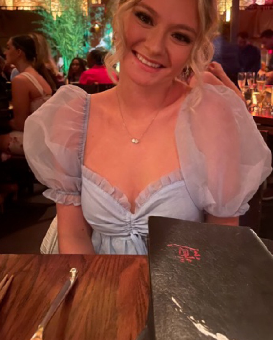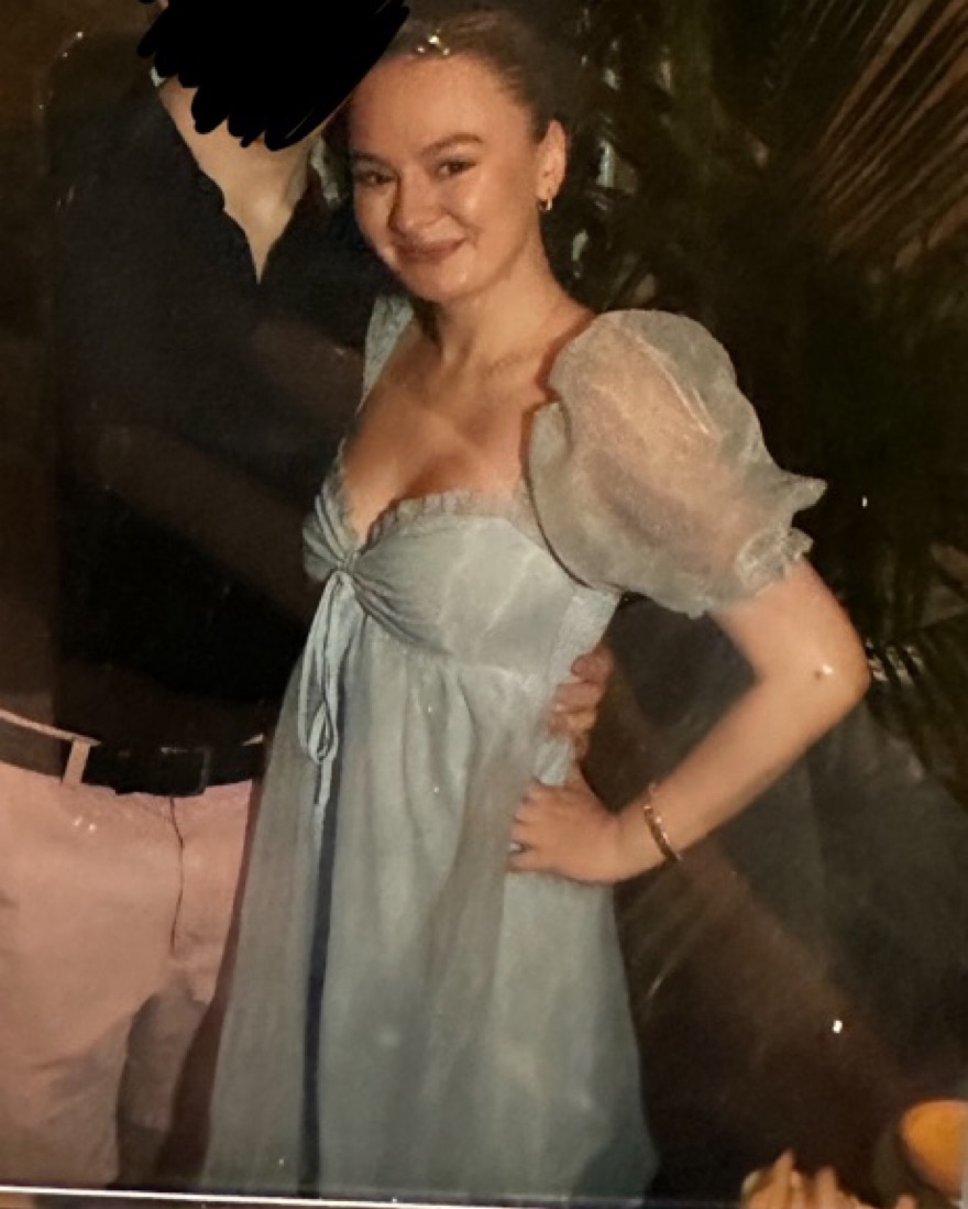 Only worn a couple times, adjustable top (can be sinched with the bow), I’m 5’0” & 100lbs for reference!