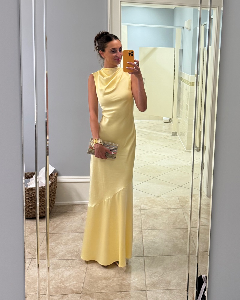 Perfect wedding guest dress that’s only been worn once (so far)! The dress got sooo many compliments 💛 Size 4 but fits more like a 2 and can be adjusted with the ties in the back