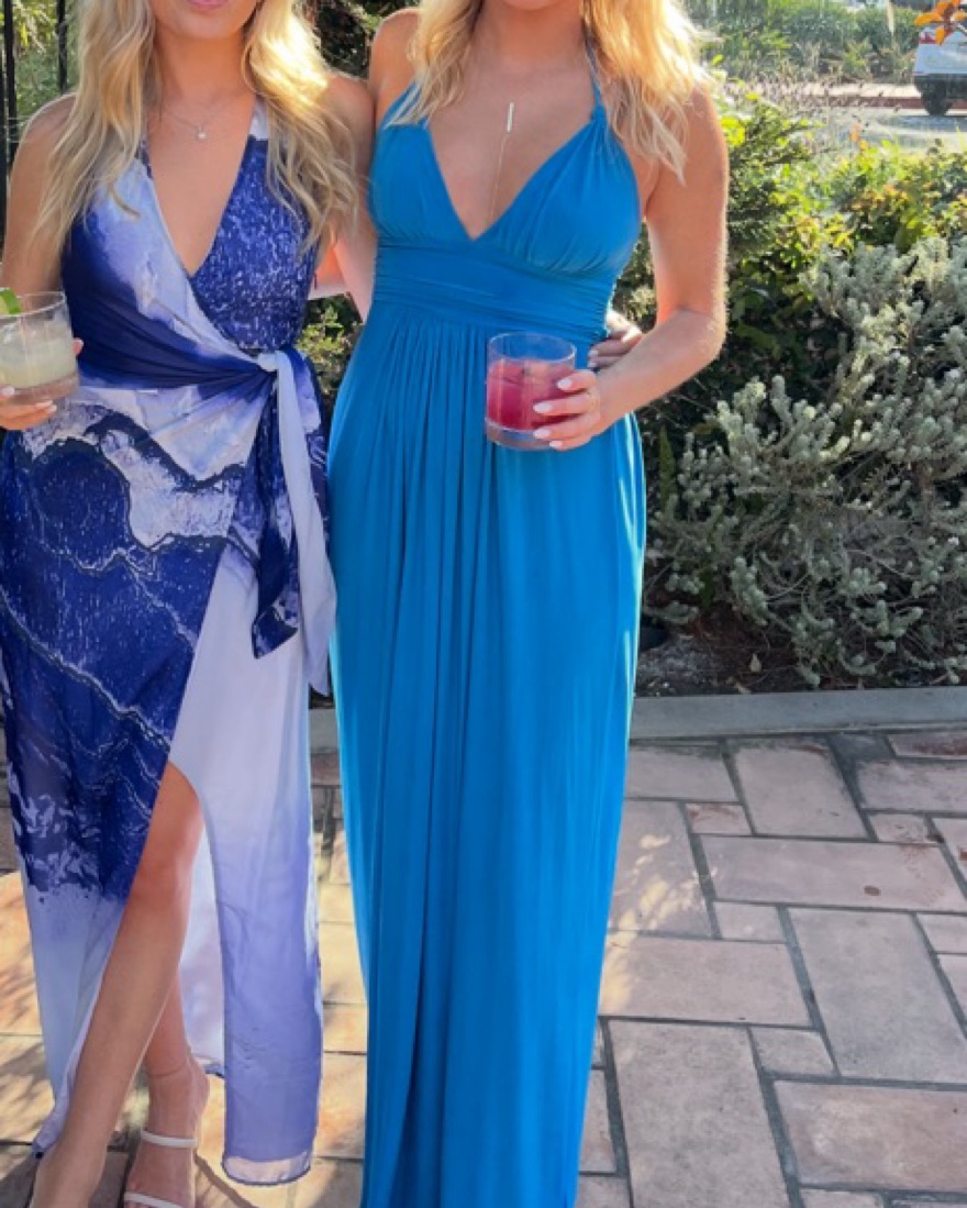 gorgeous blue dress, comfortable stretchy material. halter neck tie so can be adjusted to lift you up. there is slight open back detail as well with crossing straps