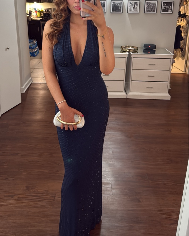 Meshki Sparkle Halter Gown by Meshki - Pickle