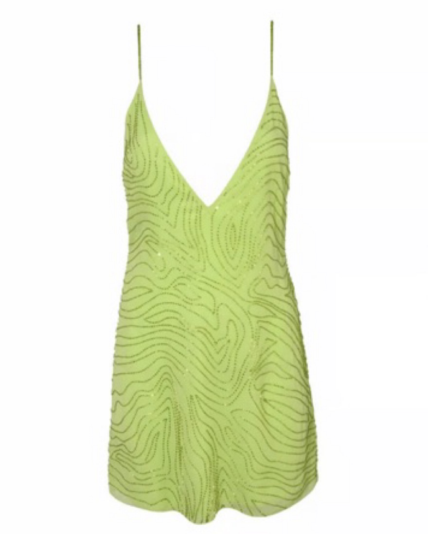 rat & boa green valetta dress. mini dress with deep v-neck, scooped back, adjustable straps and beading all over the dress. so fun for a night out! this dress is very delicate due to the beading so please be very careful!!