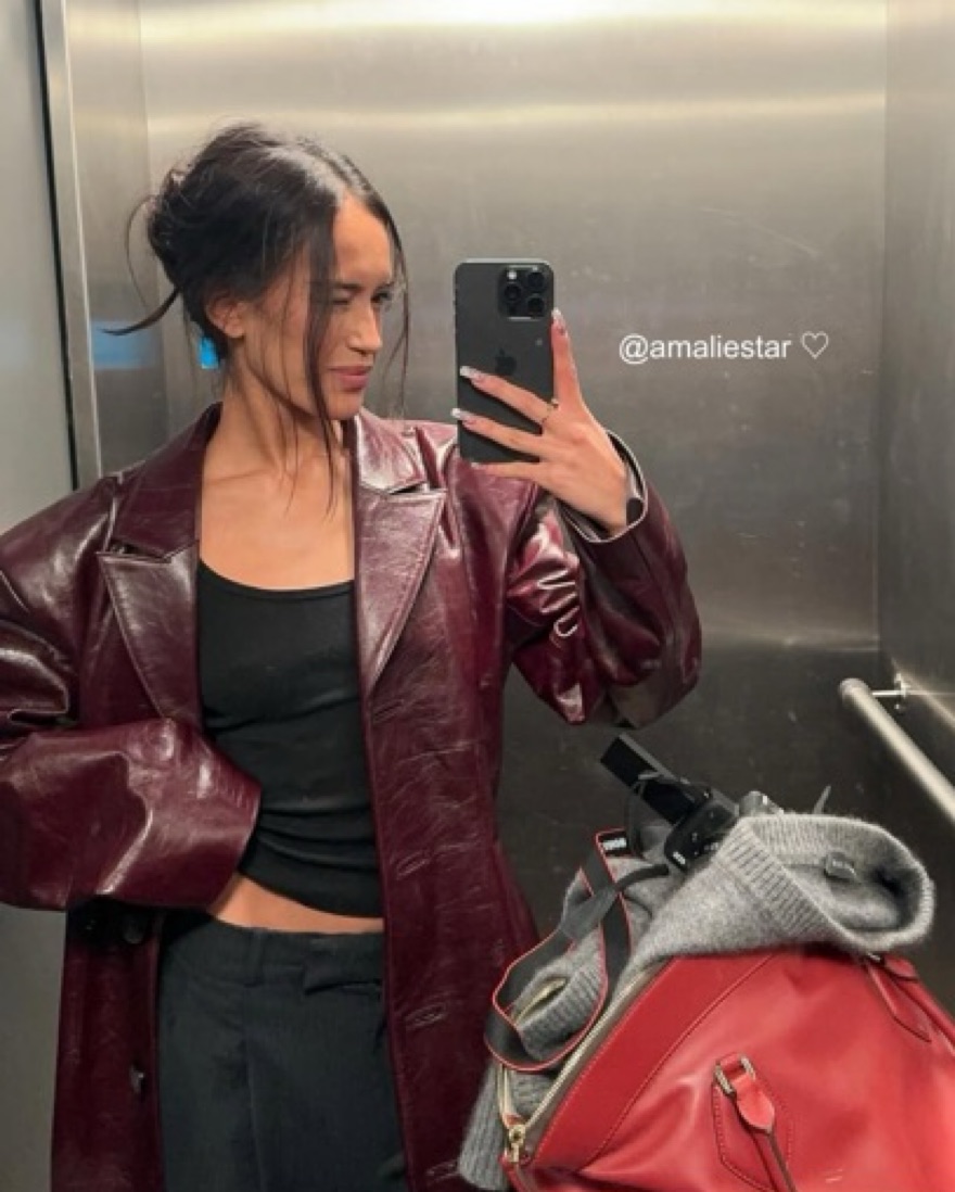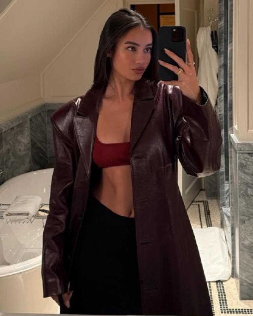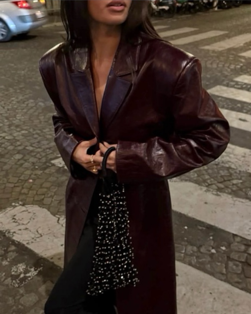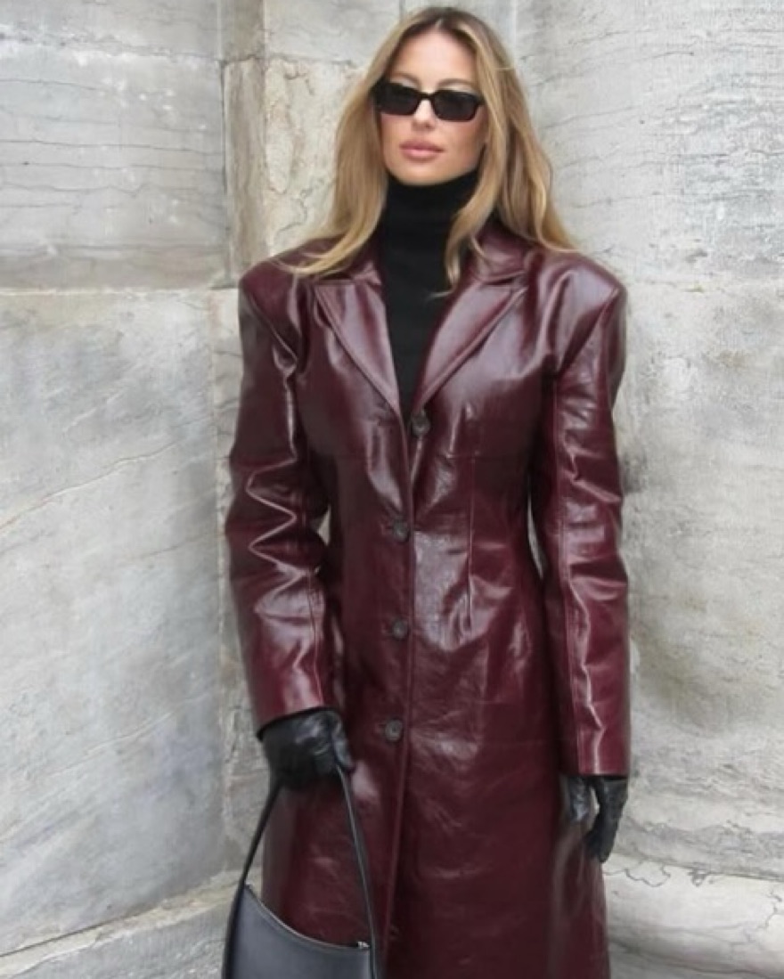 Burgundy Gia Leather Coat
