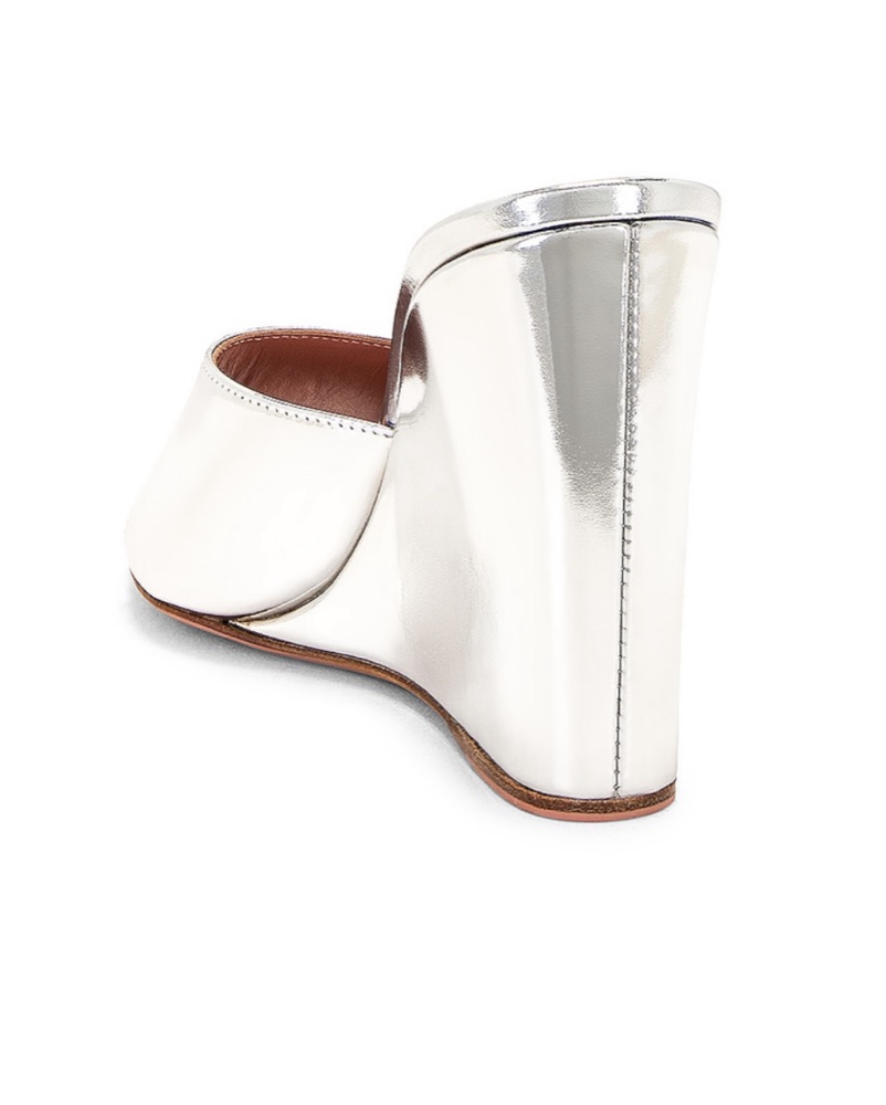 $860 AMINA MUADDI Silver Lupita Mirror Wedge. Perfect for winter and summer. I’m a 6.5, these are a 7