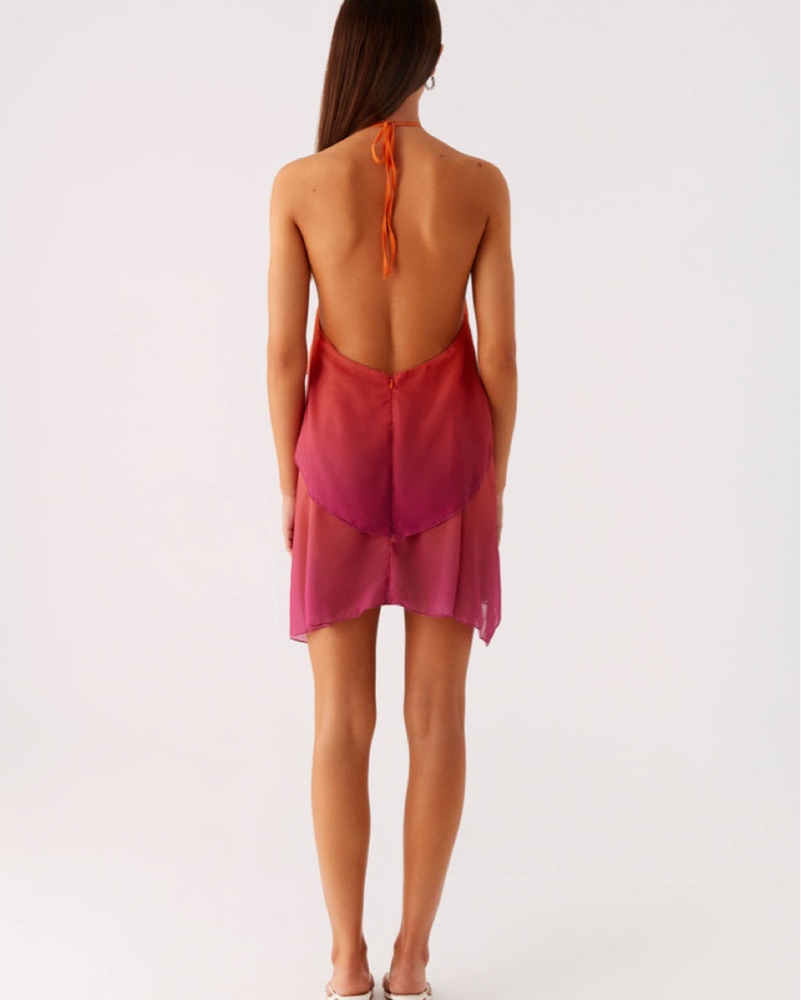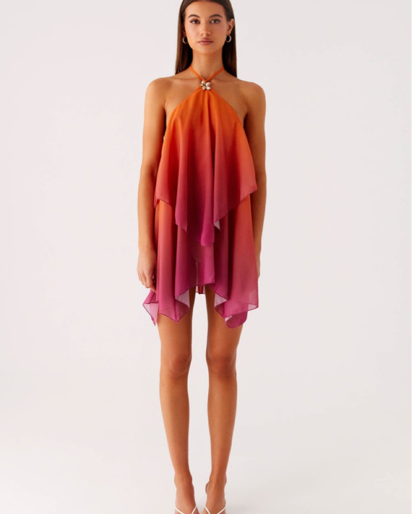 This stunning ombre dress is perfect for a night out or a special occasion. The halter neckline and flowing layers create a flattering and eye-catching look.