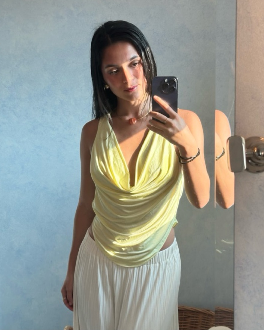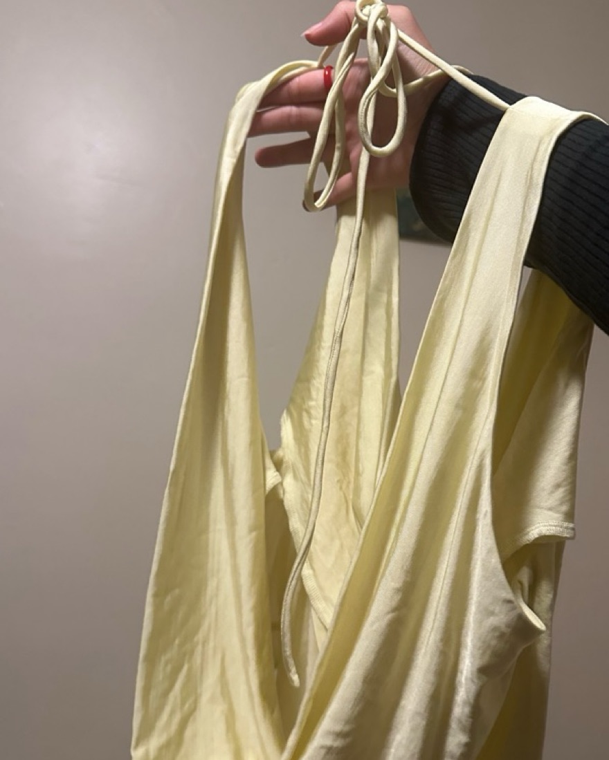 From their sample sale. Backless and super cute. Includes a lining at the top so a bra isn’t mandatory! 1 of 1 piece and gorgeous butter yellow. Mirror palais