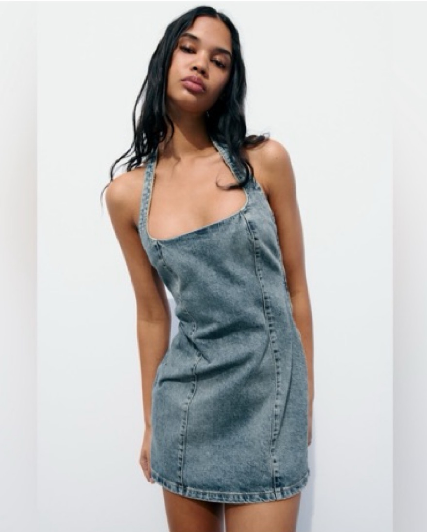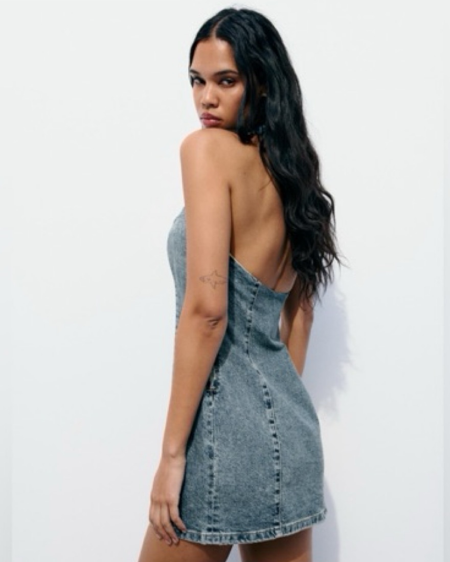 Denim Halter Mini Dress by Zara - Pickle