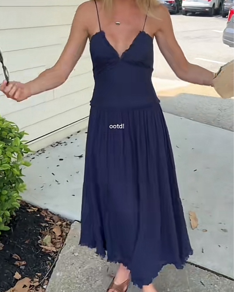 Beautiful dress, fits like a size S and has adjustable straps. Middle section is super flattering/sucks you in. Perfect for weddings, bridal showers, beach, etc. Sold out online