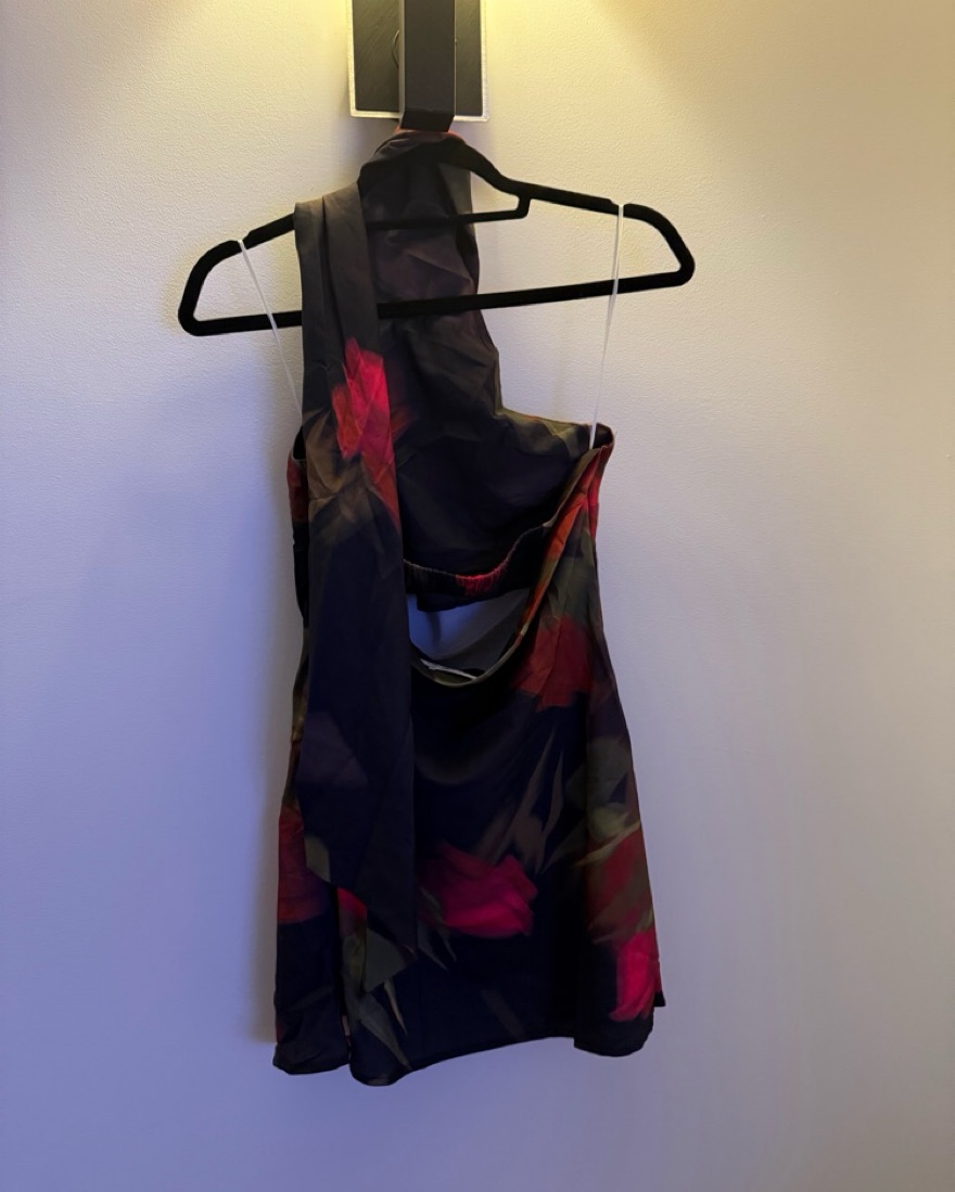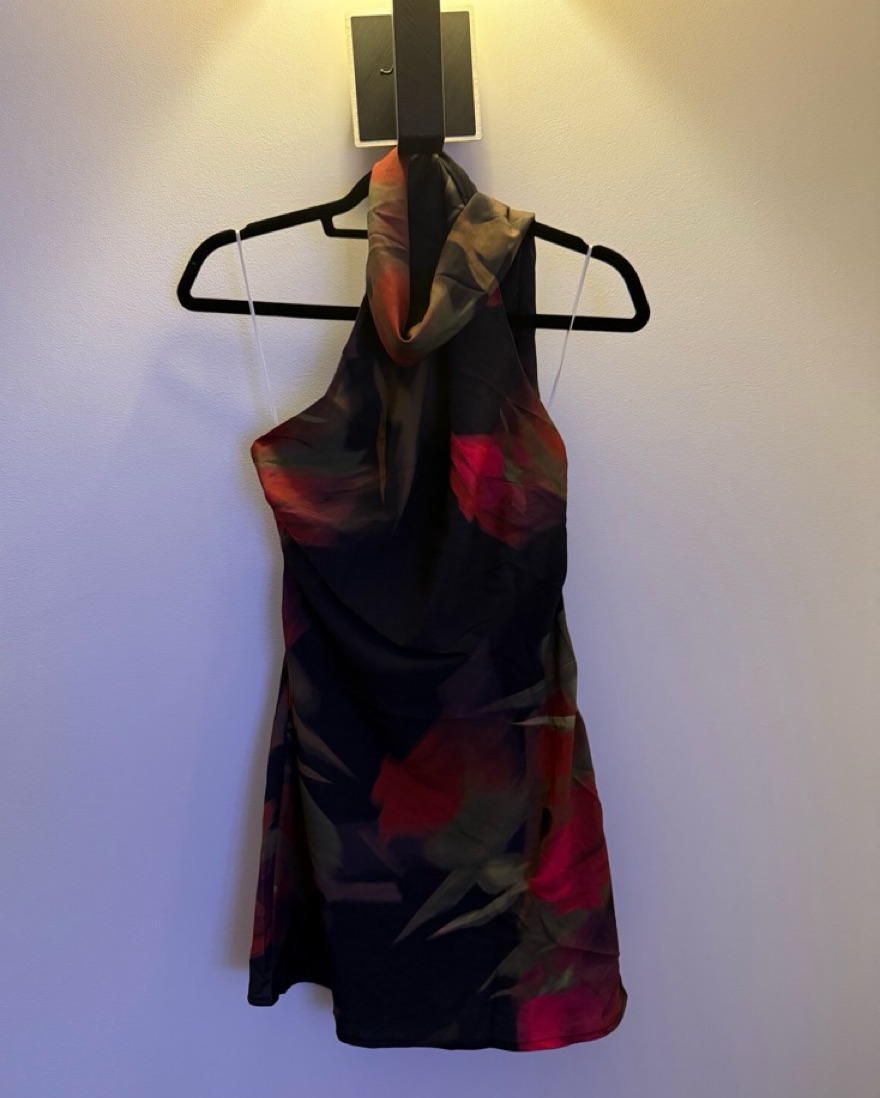 This statement halter dress with a bold floral print is perfect for a summer evening event or fun weekend outing.