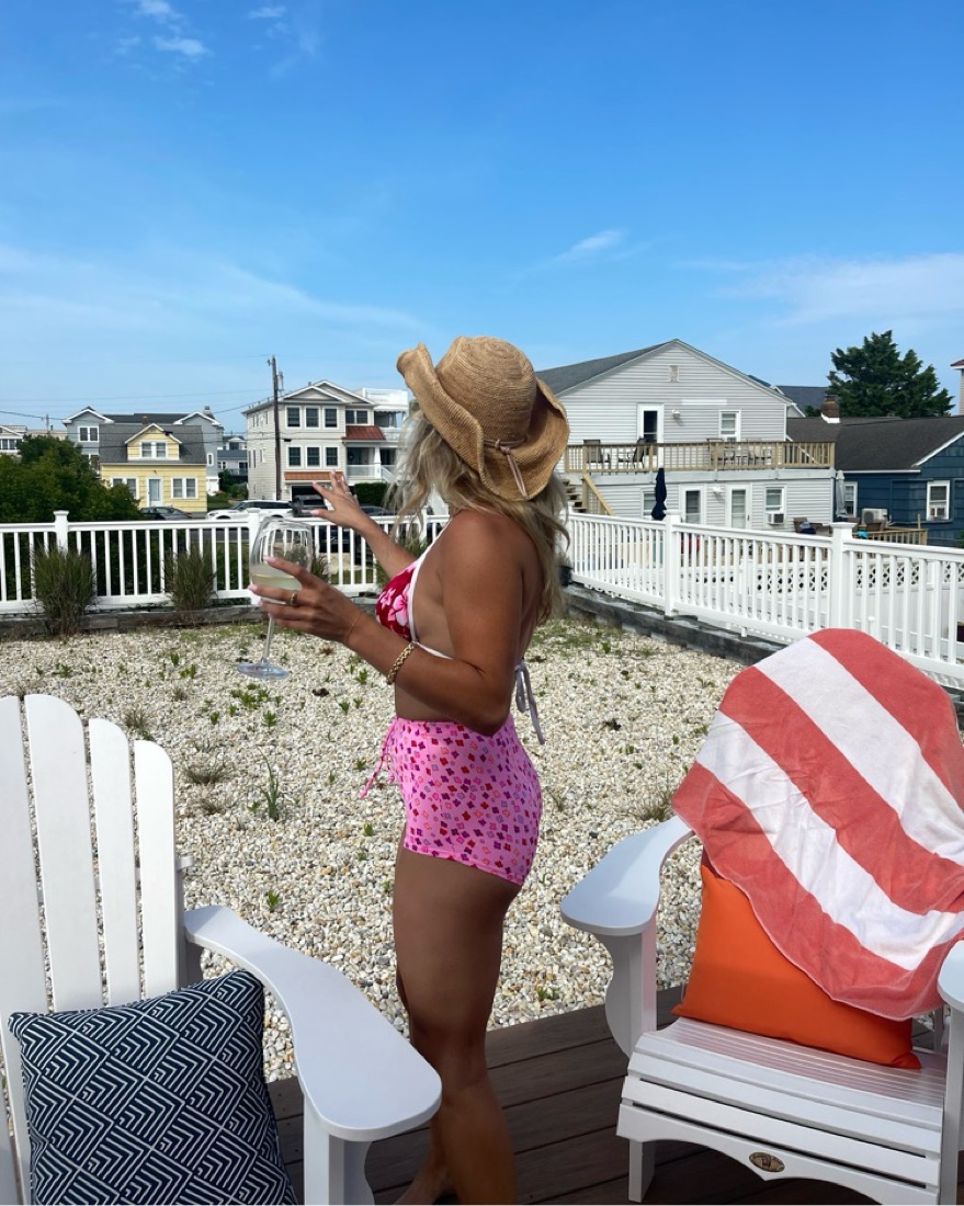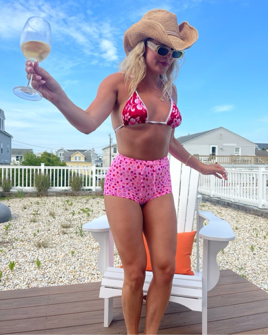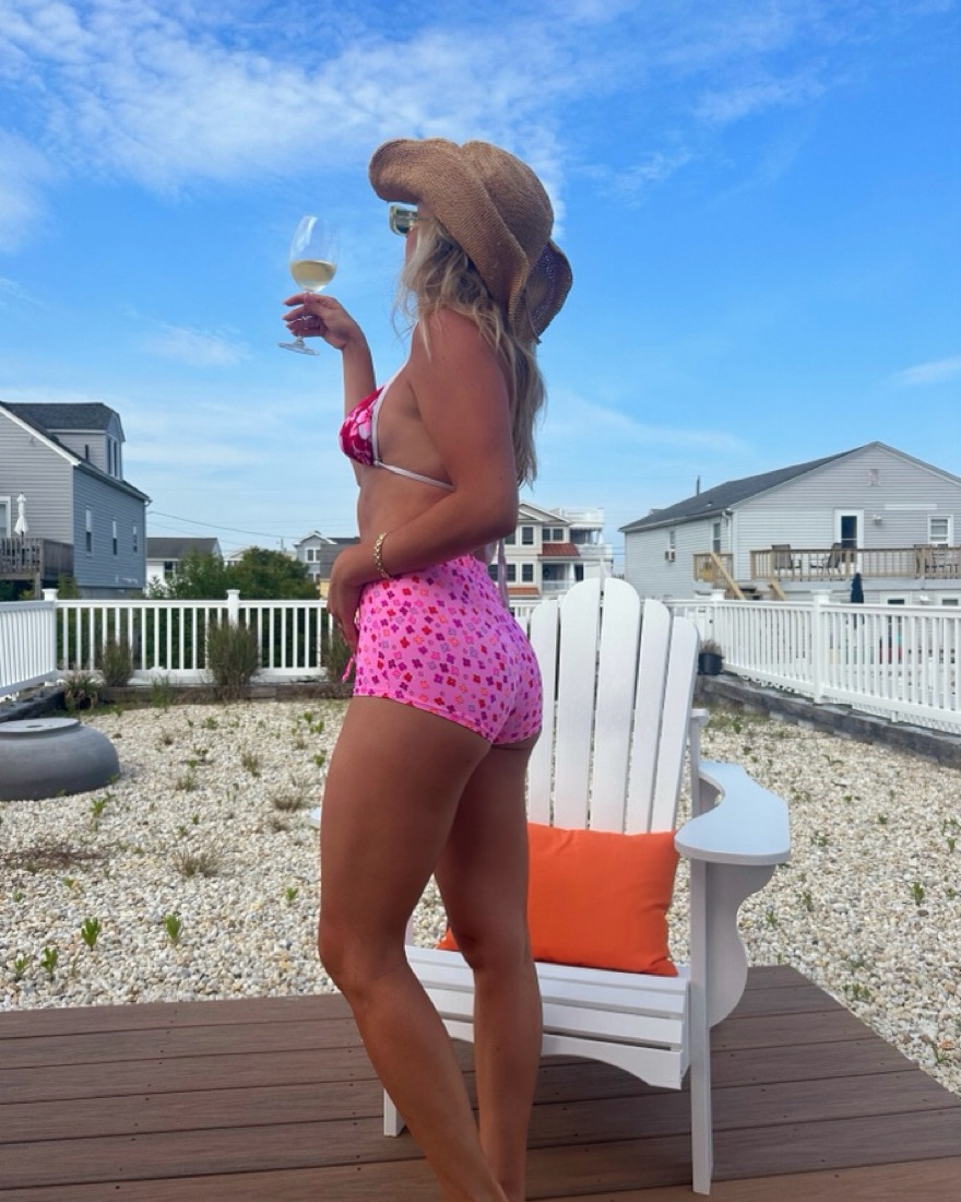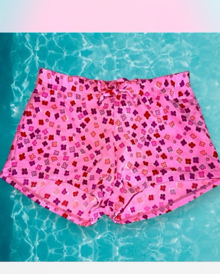 Pastel pink and daisies. 90s bikini top with boy shorts.