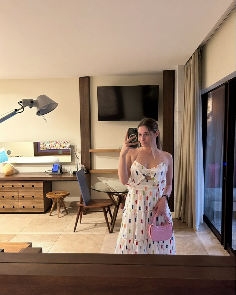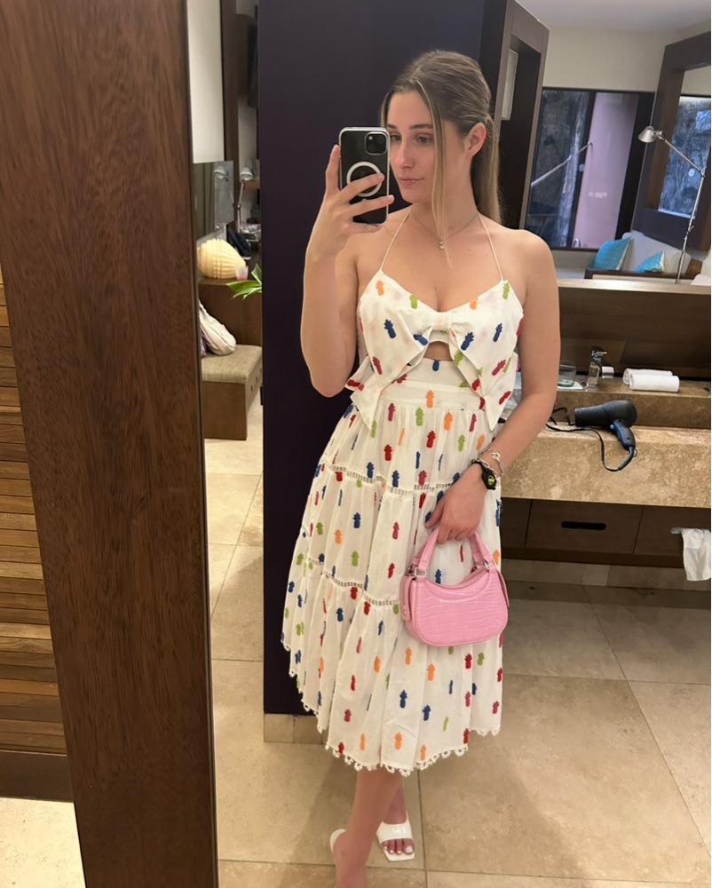 Farm Rio Colorful Pineapple Dress. Ties around the neck.