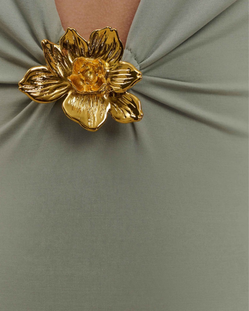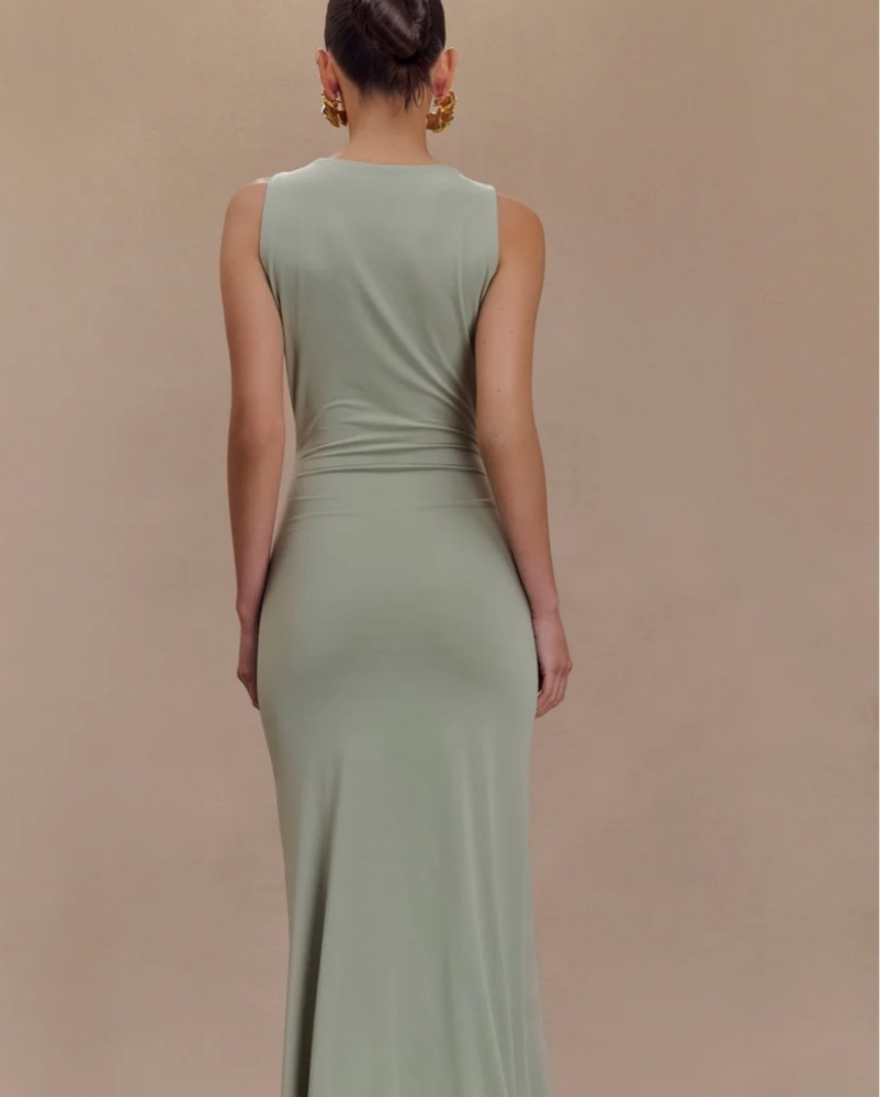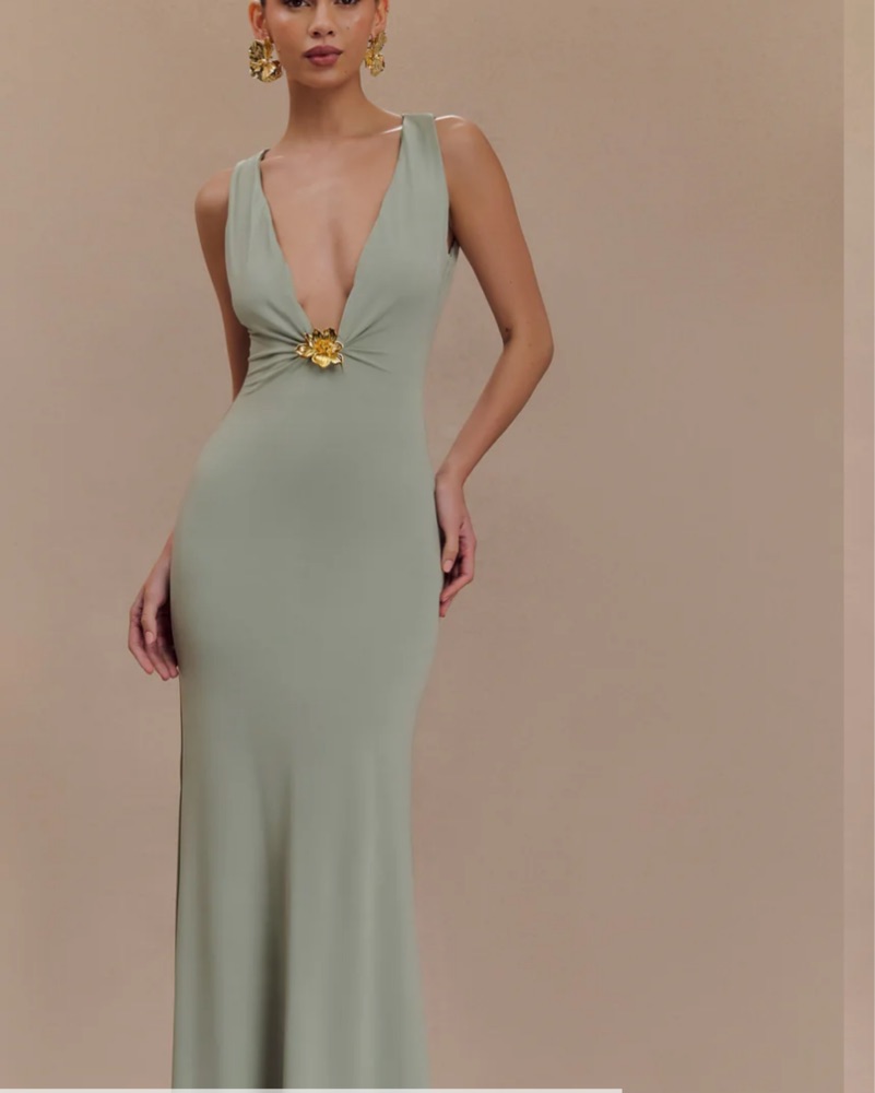 This stunning maxi dress is perfect for any formal occasion, from weddings to galas. The sleek, minimalist design and luxurious fabric create a timeless and sophisticated look.