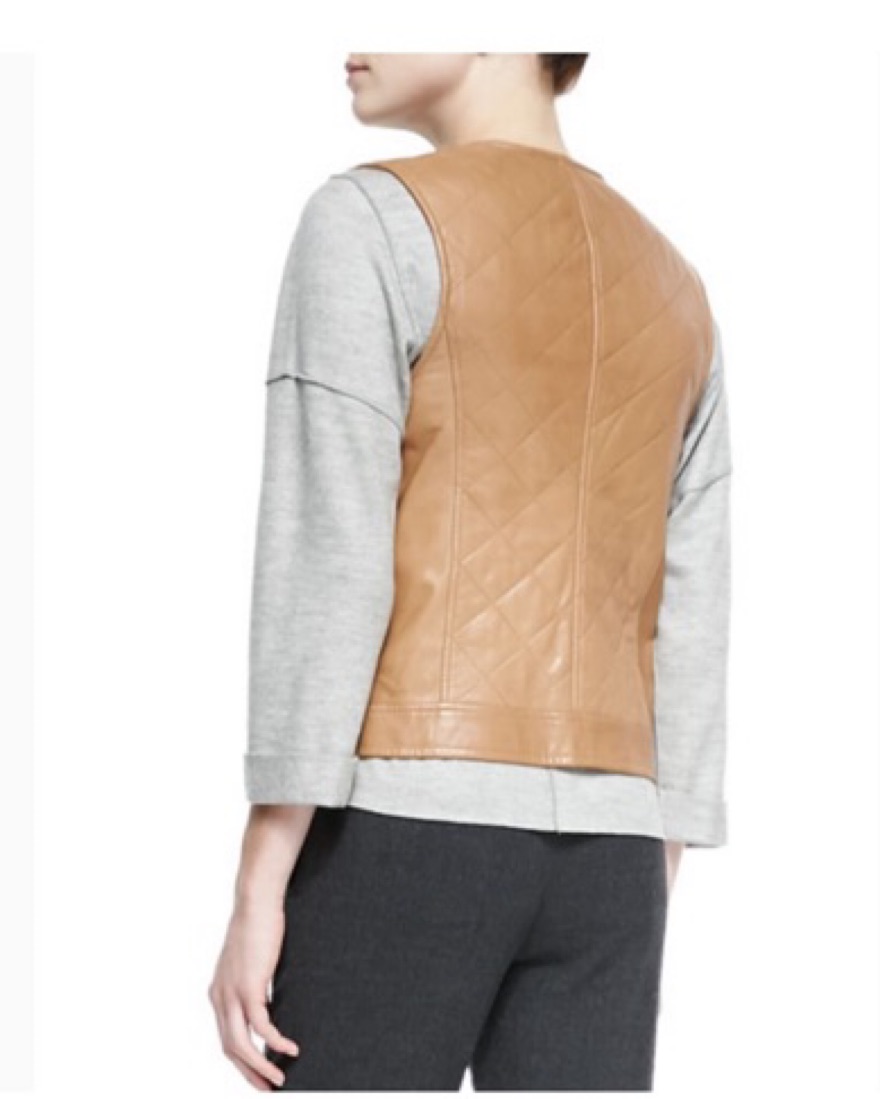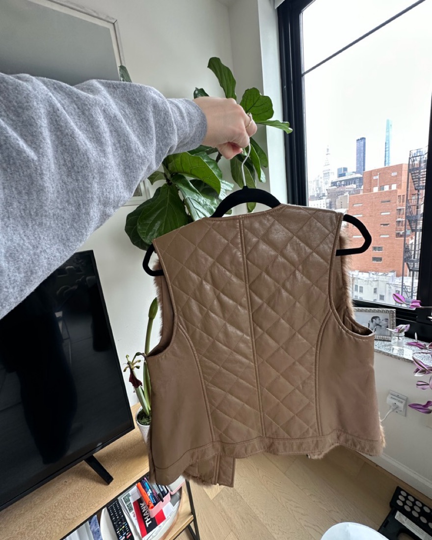 Backed by luxurious lamb leather with a quilted stitch detail, this rabbit fur front vest is a sophisticated layering piece .