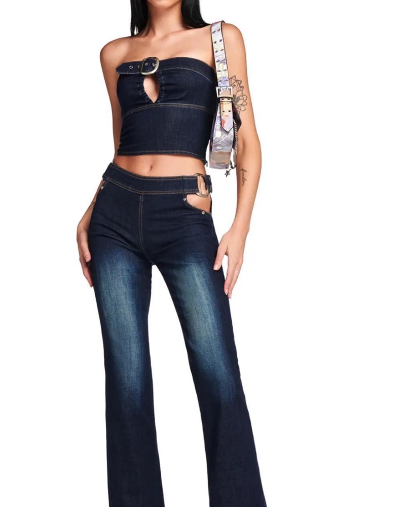 I Am Gia Denim Cropped Top and Jeans Set by I AM GIA - Pickle