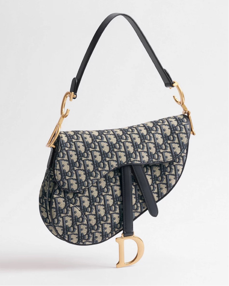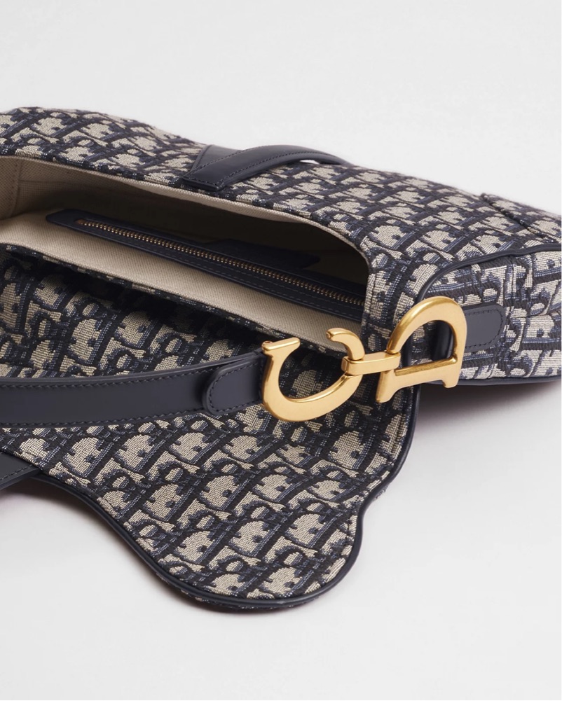 The iconic and legendary Saddle bag is crafted in blue Dior Oblique jacquard. It features a Saddle flap with a D stirrup strap and magnetic pull, as well as an antique gold-finish metal CD signature on either side of the top handle. MINOR SCRATCHING ON HARDWARE