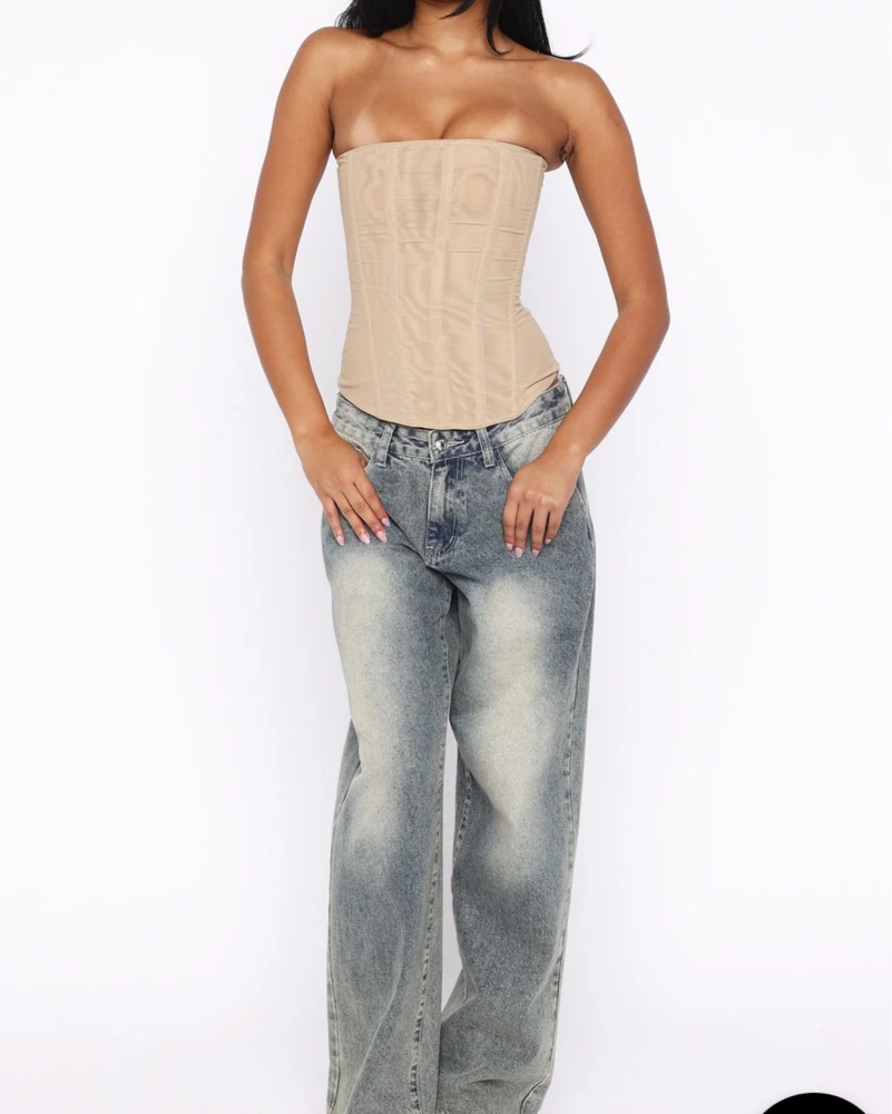 This corset top is great to enhance your hips and bust! great to wear during night and day to dress up or down. zipper back.