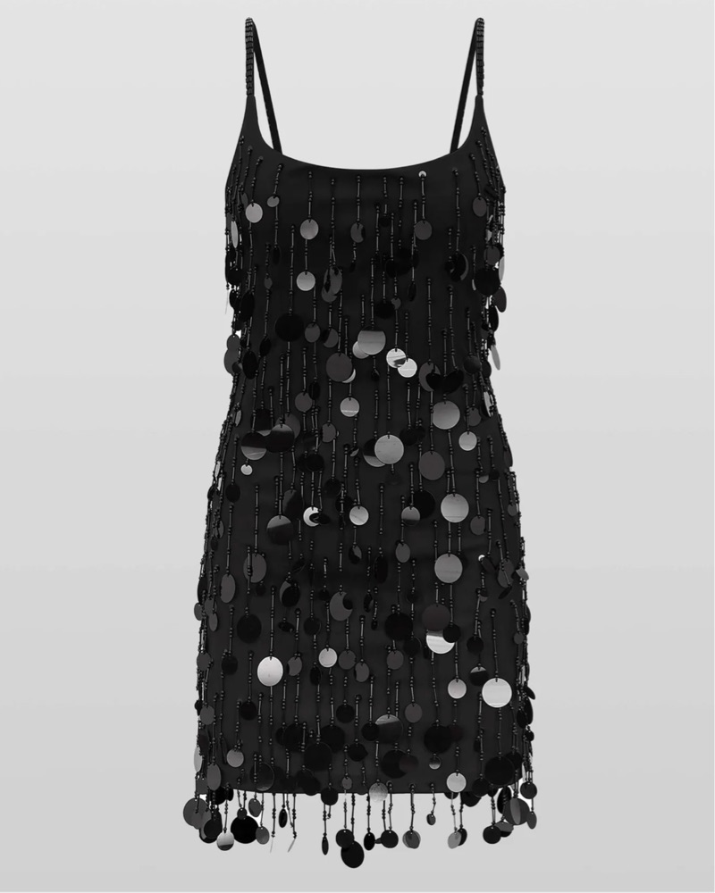 Slip on style Square neckline Hand-finish sequin detail Delicate item