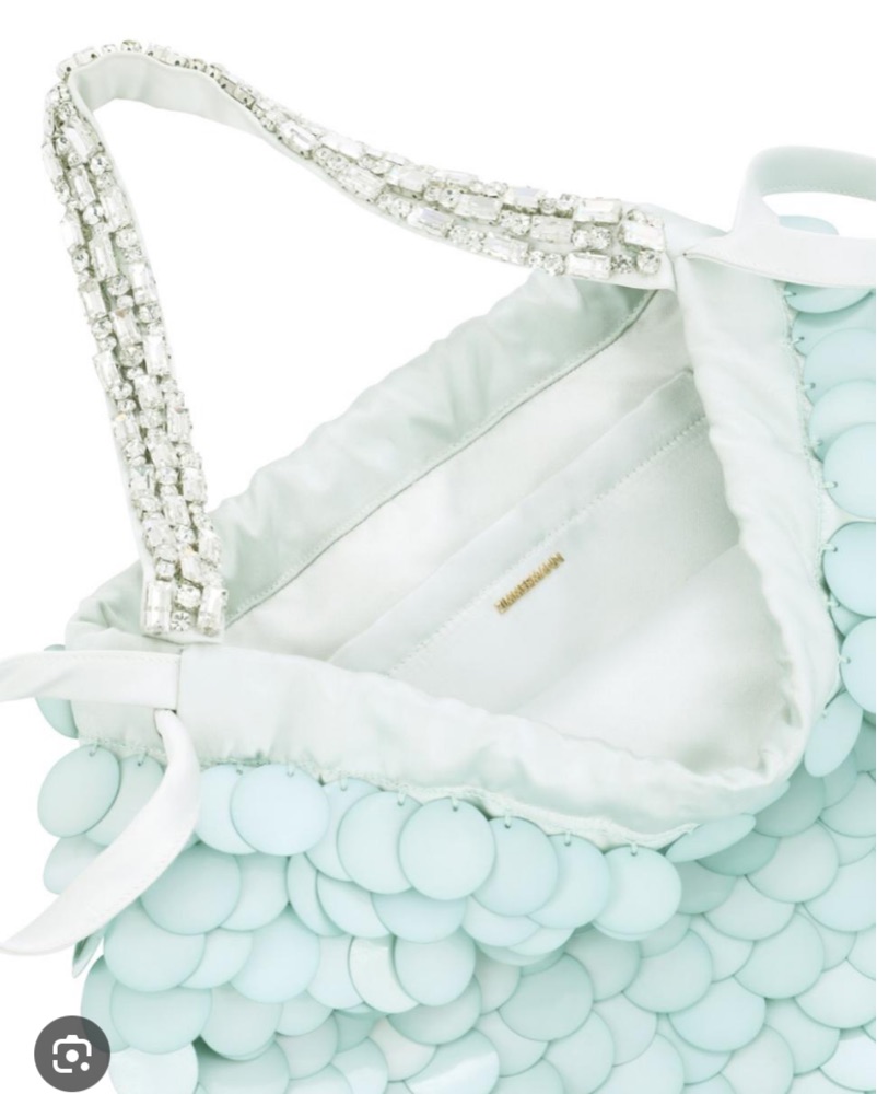 Fun mini bag with silk interior / mint beaded exterior and beaded silver straps. Please be delicate!