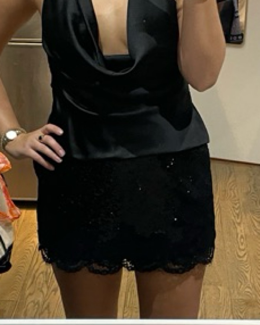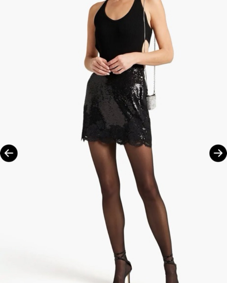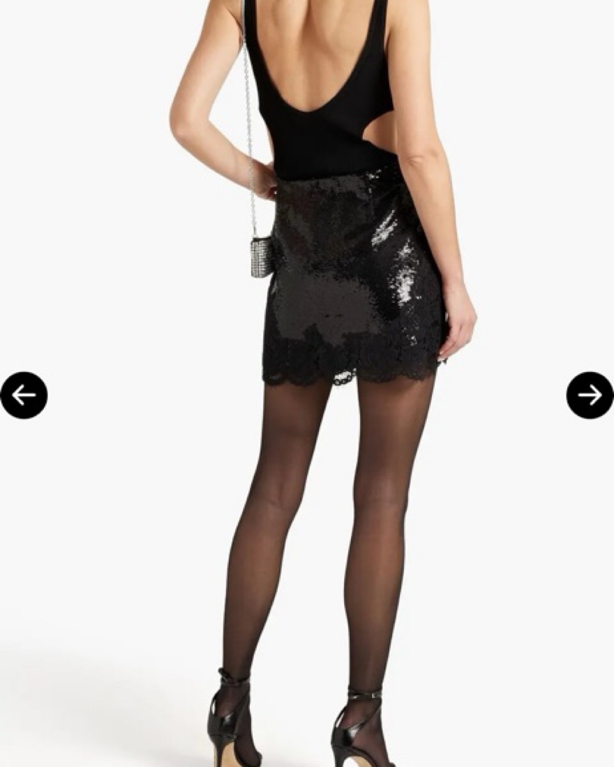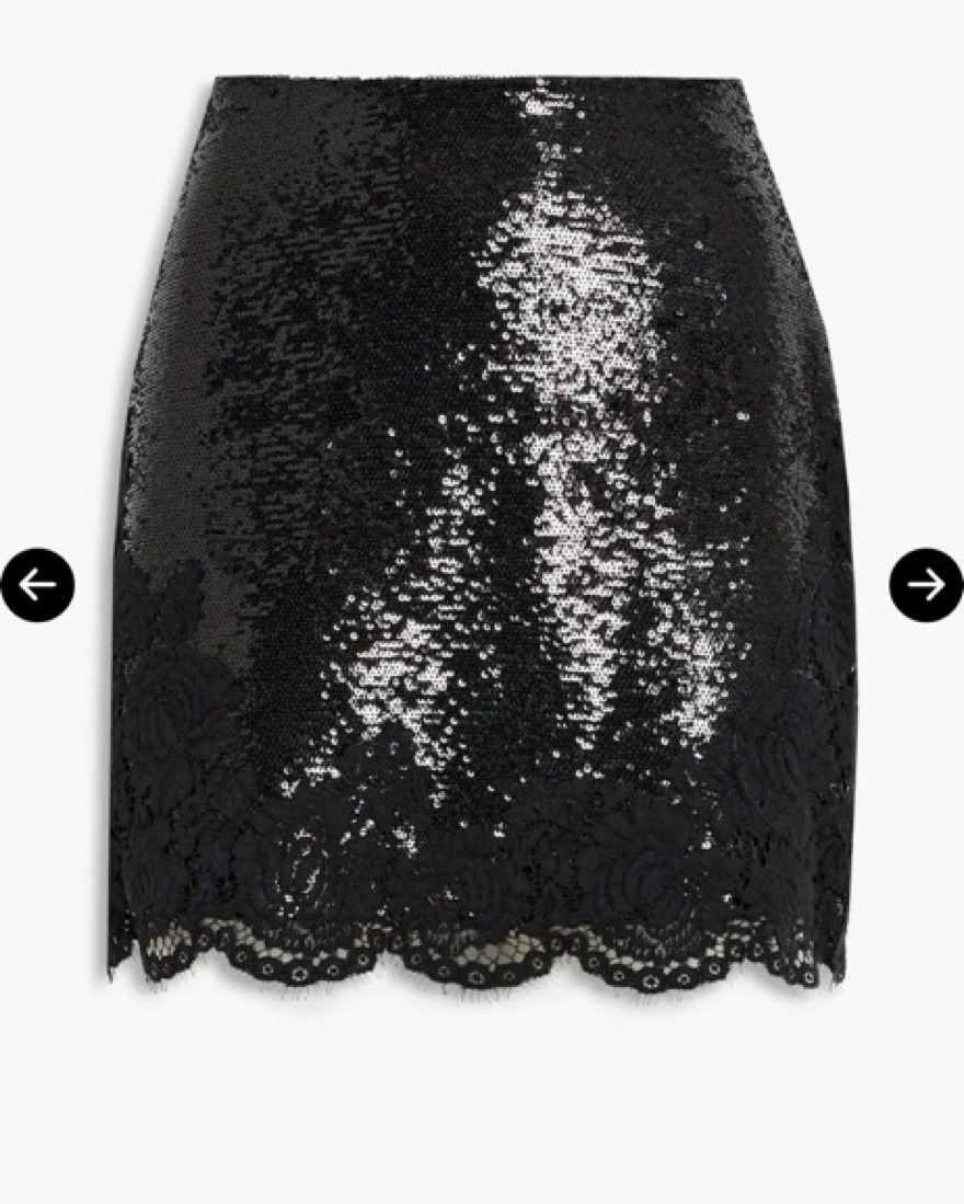 Philosophy Di Lorenzo Serafini lace trimmed black sequined mini skirt. So perfect for night out! Always get so many compliments on it! *please note there is no stretch to it*
