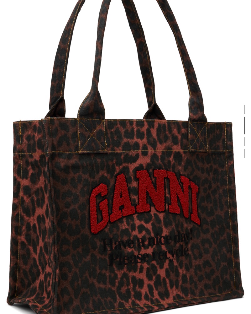 This stylish and versatile Ganni tote bag is perfect for everyday wear or special occasions. Its bold leopard print design adds a touch of glamour to any outfit.