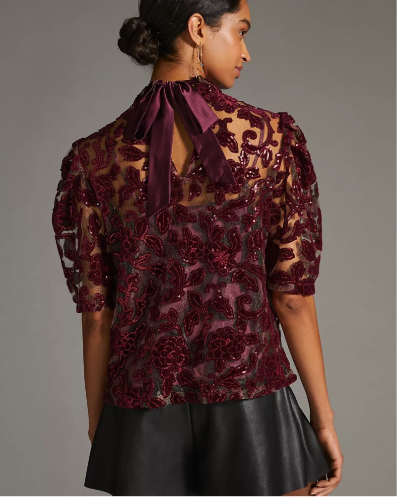 By Anthropologie Velvet Cutwork Blouse a