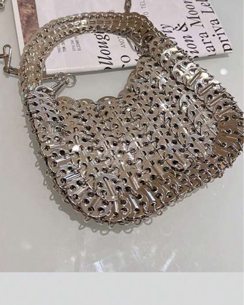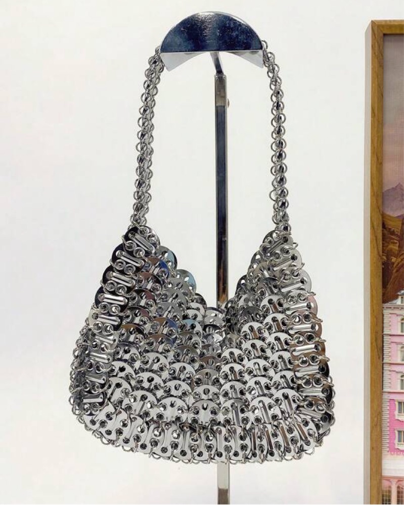 Metal Sequin Bag . Inspiration Paco Rabanne 1969 bag. This fits any going out outfit. You can fit your cards, lipgloss, phone and your ring light ;)