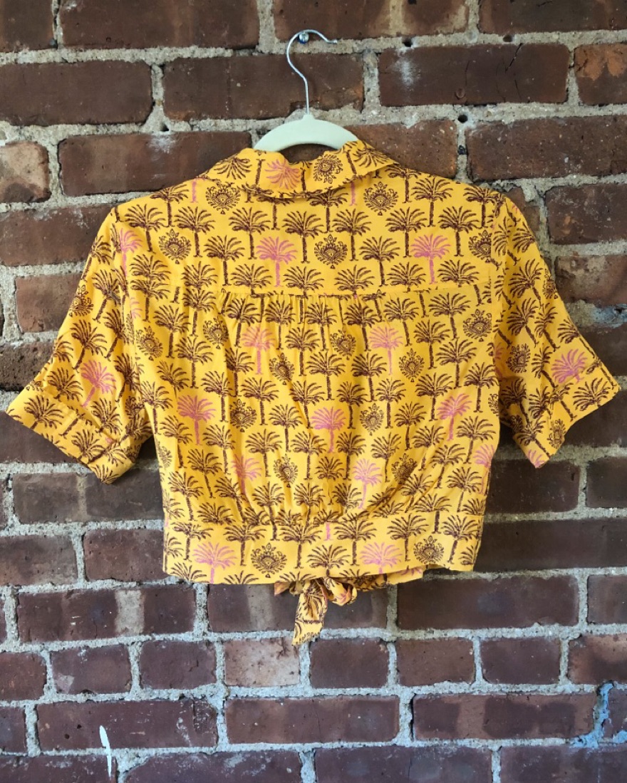 Yellow UO button down crop top