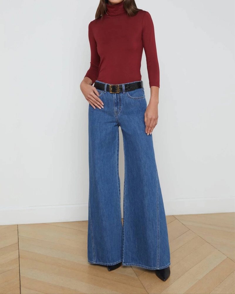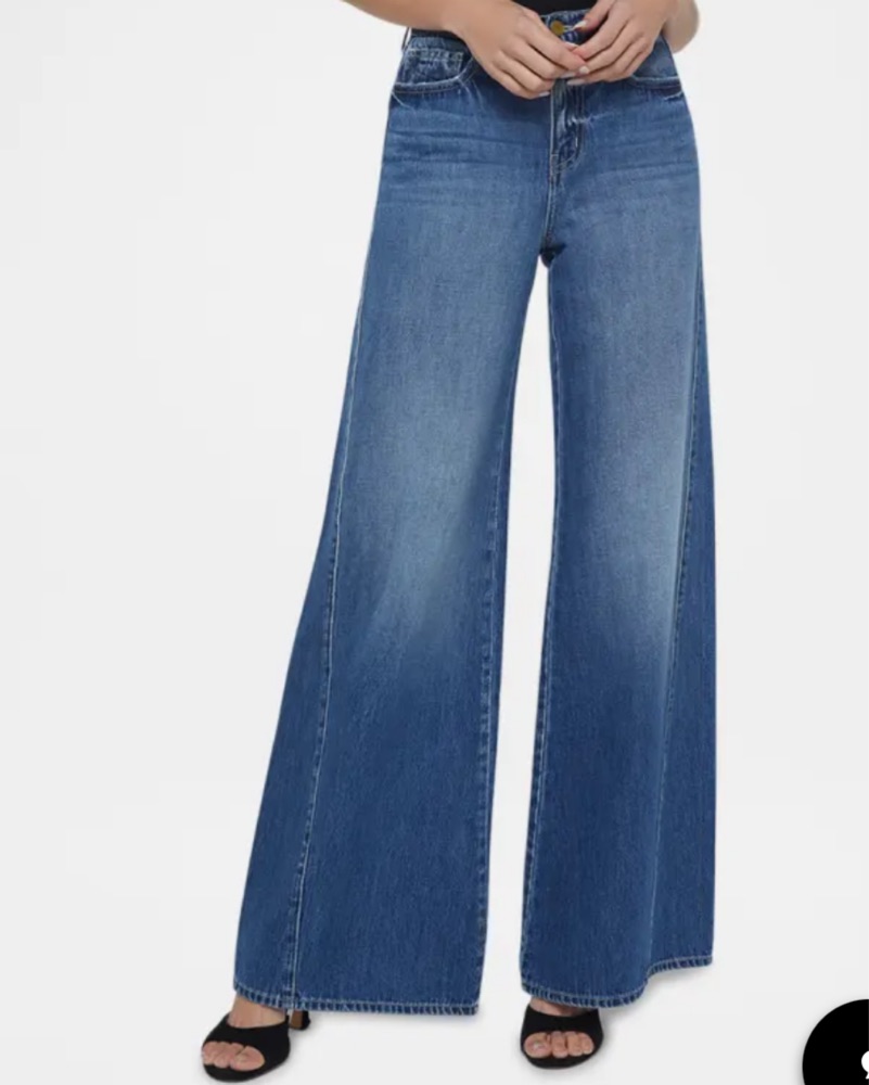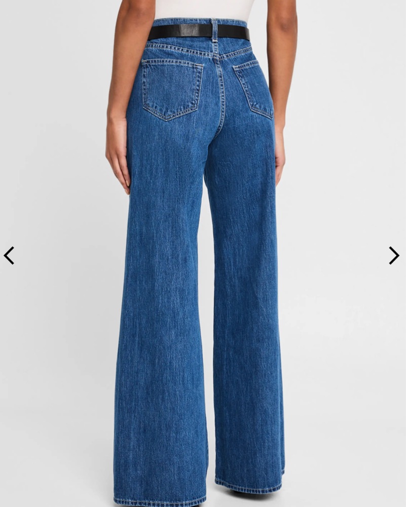 'Agence's Glendora Beau Wide-Leg Jeans, an embodiment of chic style and comfort. Crafted from 100% cotton denim, these jeans feature a relaxed fit with a mid-rise and a wide-leg design, accented by a 10.5" rise, 33" inseam, and 29" leg opening. Very lightly worn