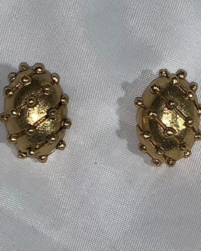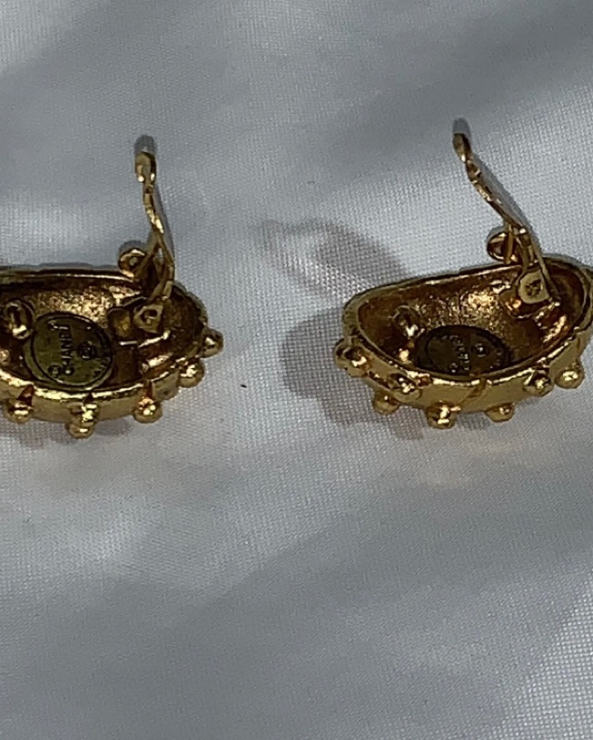 gorgeous 14k yellow gold plated CHANEL vintage "CACCOON" clip on earrings. in overall excellent pre-loved condition. earrings need ear pads replaced. DOES NOT INCLUDE BOX