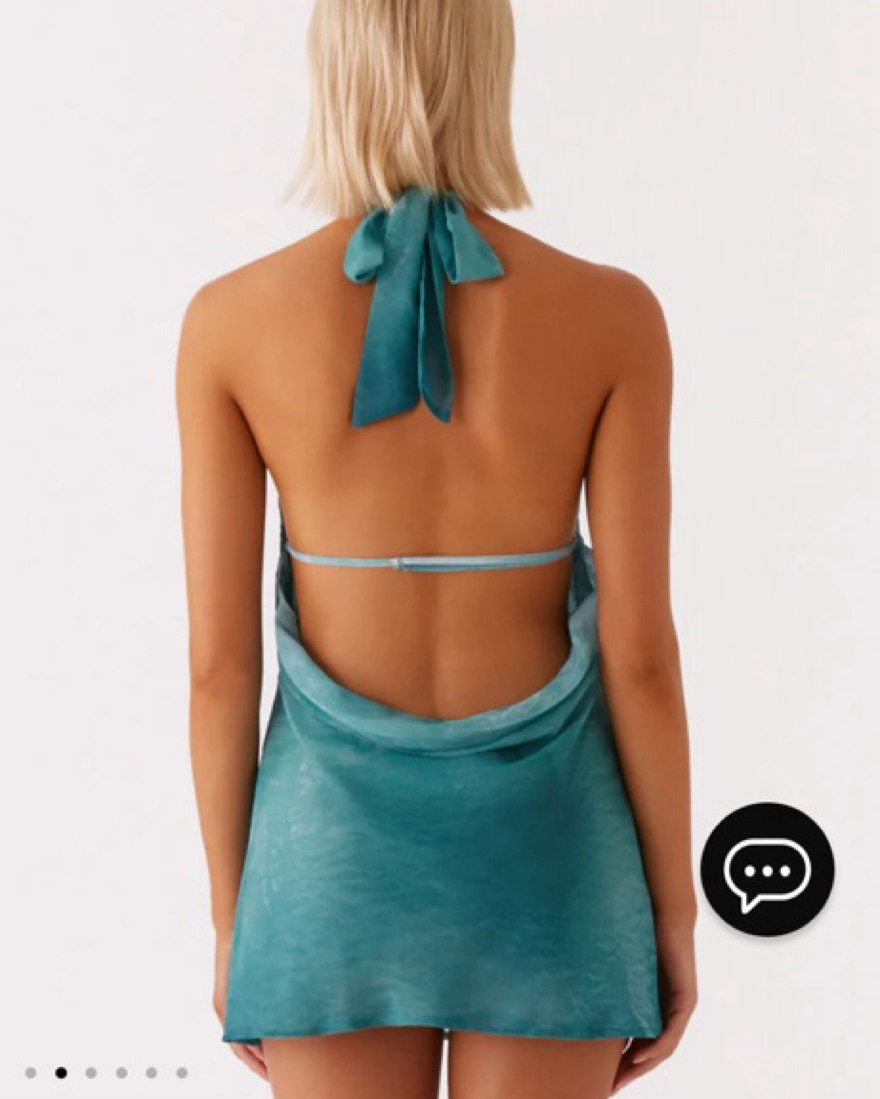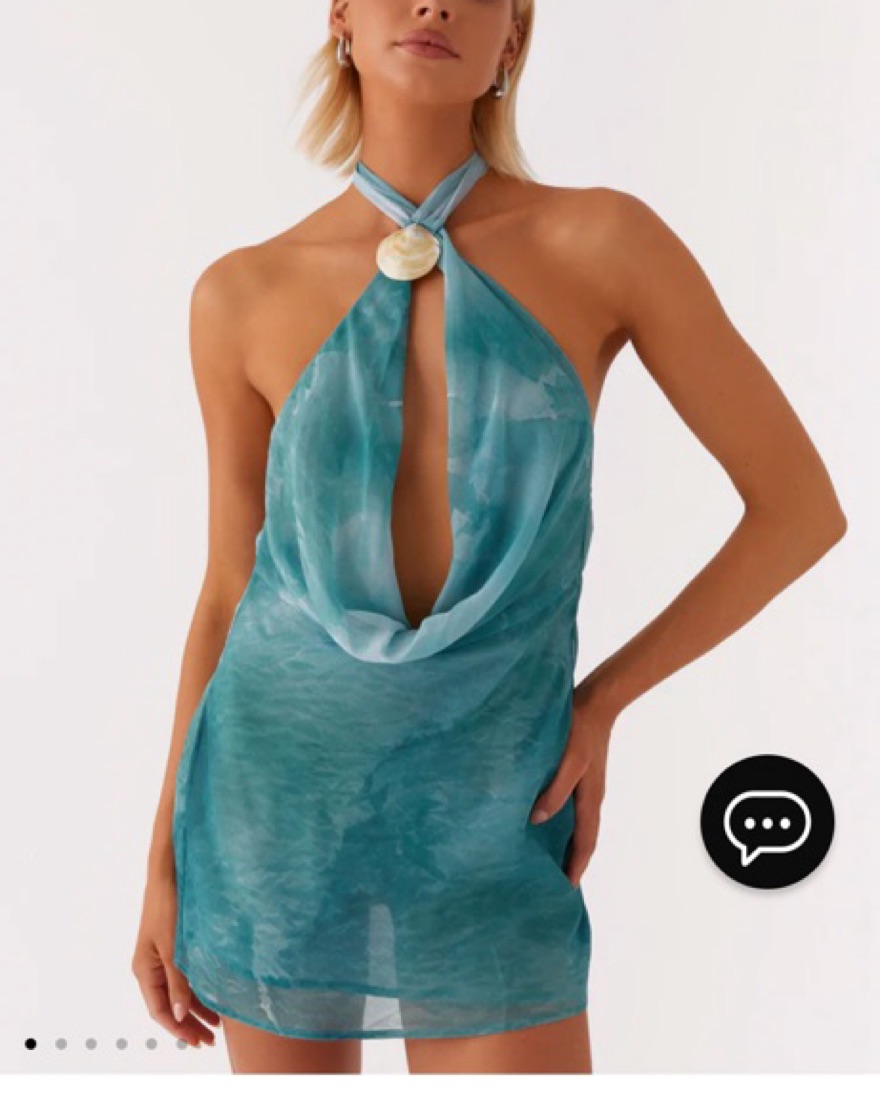 Peppermayo Exclusive - Oceans Away Deep Cowl Mini Dress - Green Tie Dye US 2