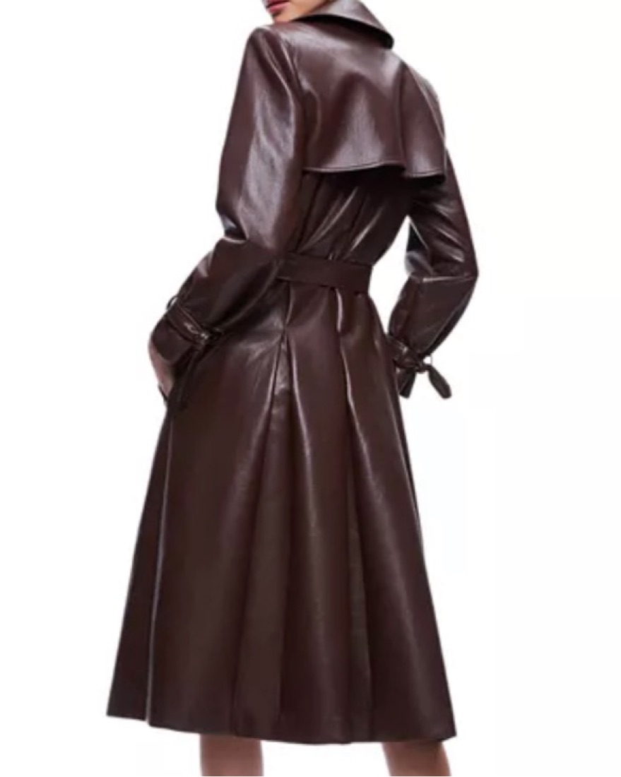 Brown Leather Trench - fits true to size designed for a relaxed fit