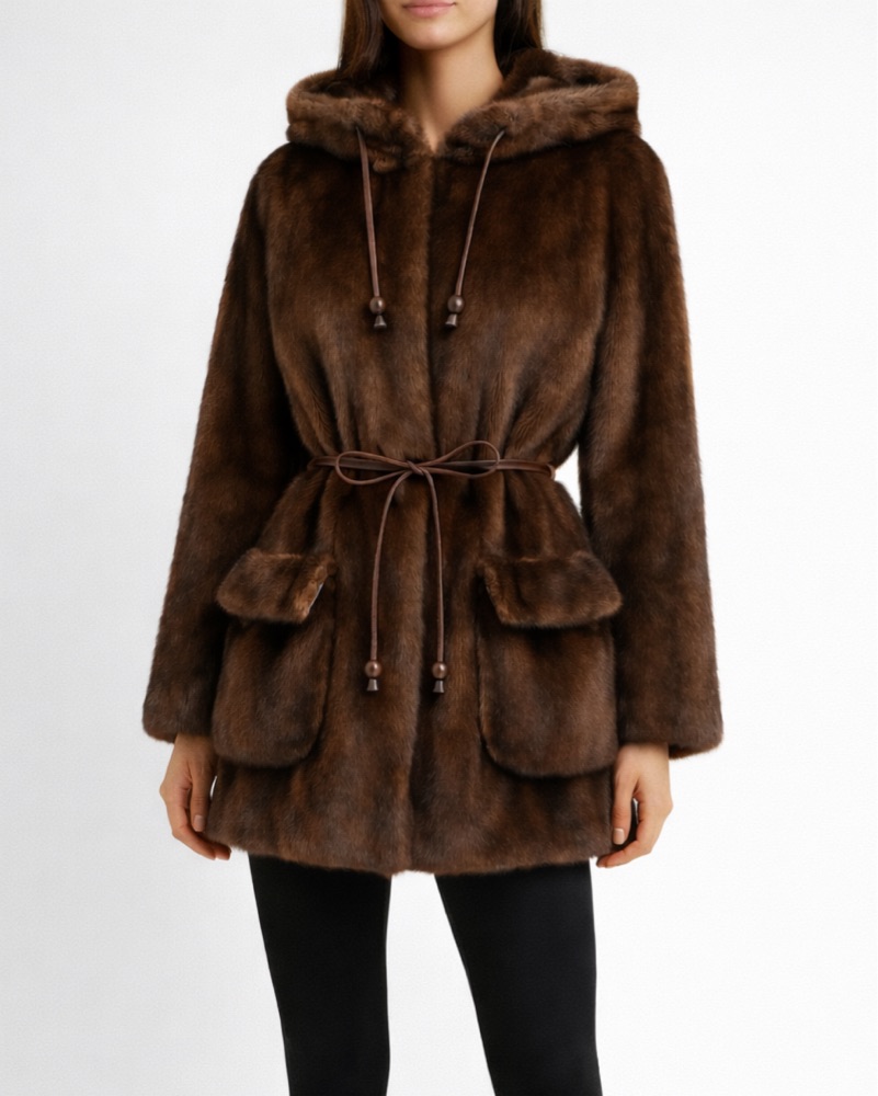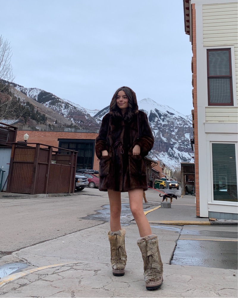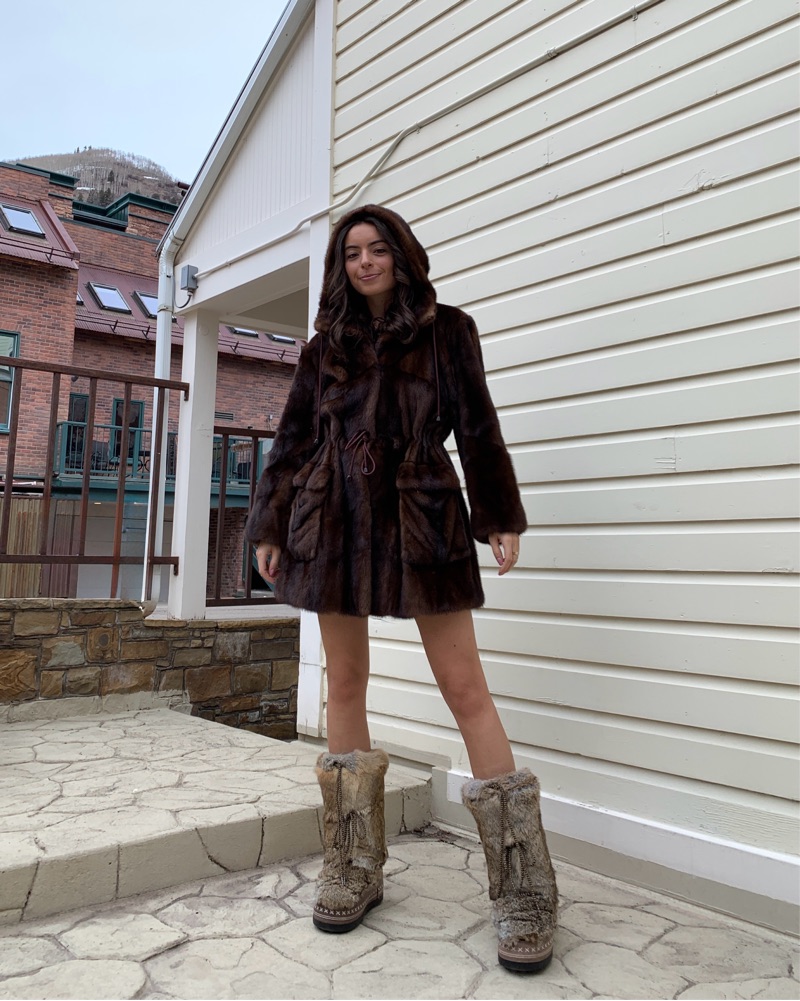 Indulge in the ultimate winter warmth with this plush faux fur coat. Ideal for staying cozy and stylish during chilly weather. Cutest mink fur coat from Michael kors perfect for a ski trip or apres ski in Colorado Aspen Jackson hole
