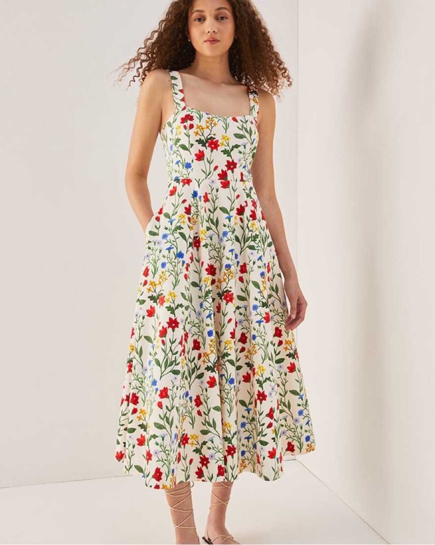 floral fit and flare midi dress