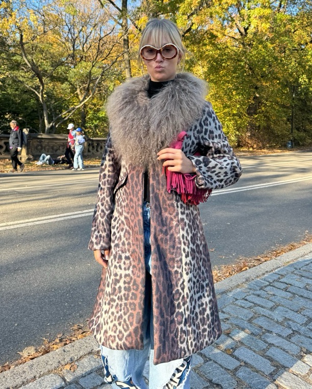 Fabulous cheetah print coat with gray fur collar