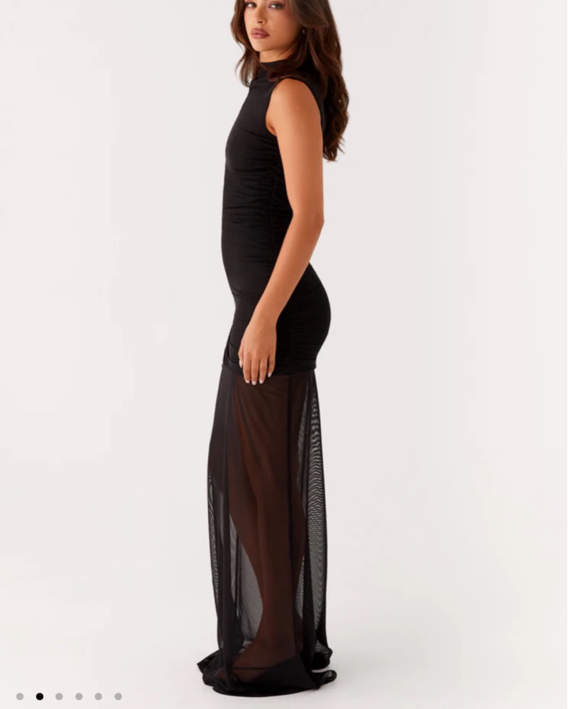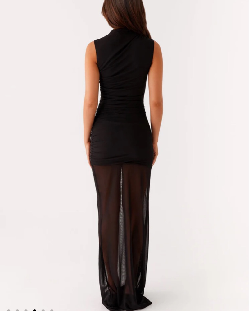 Black Half Sheer Long Dress by Peppermayo US - Pickle