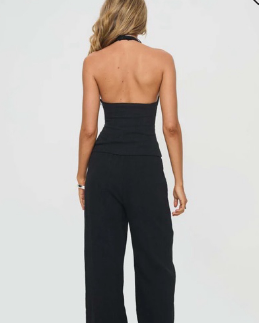 Clouded Linen Blend Vest Top. Zipper on the side. Adjustable buttons on the neck strap. Fits xs/s