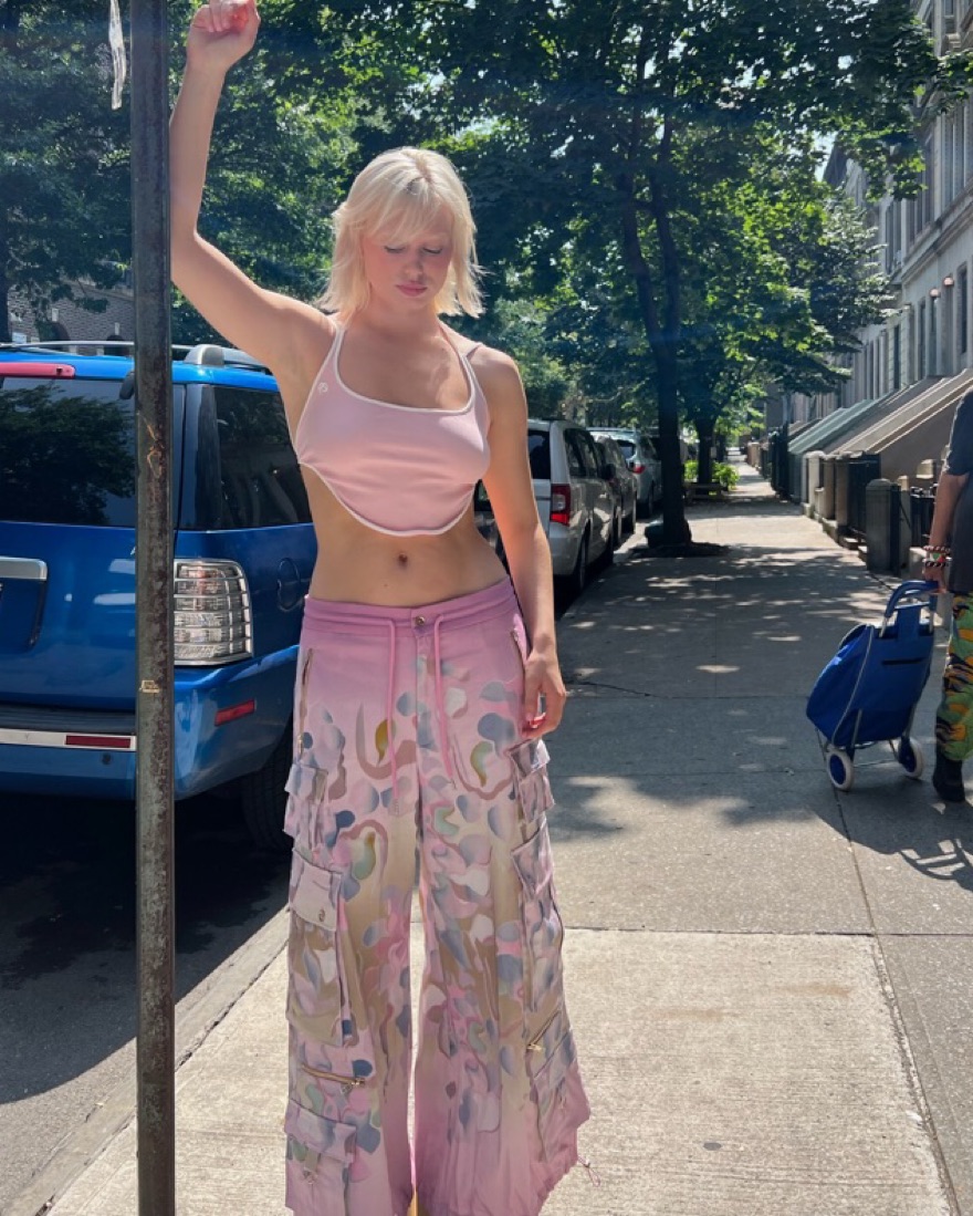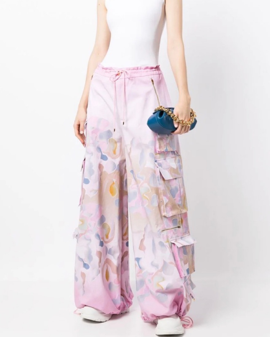 Showstopping cargo pants with drawstring, zip-pockets, and tie-dye pattern