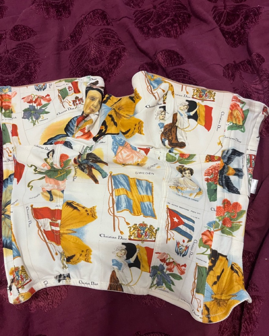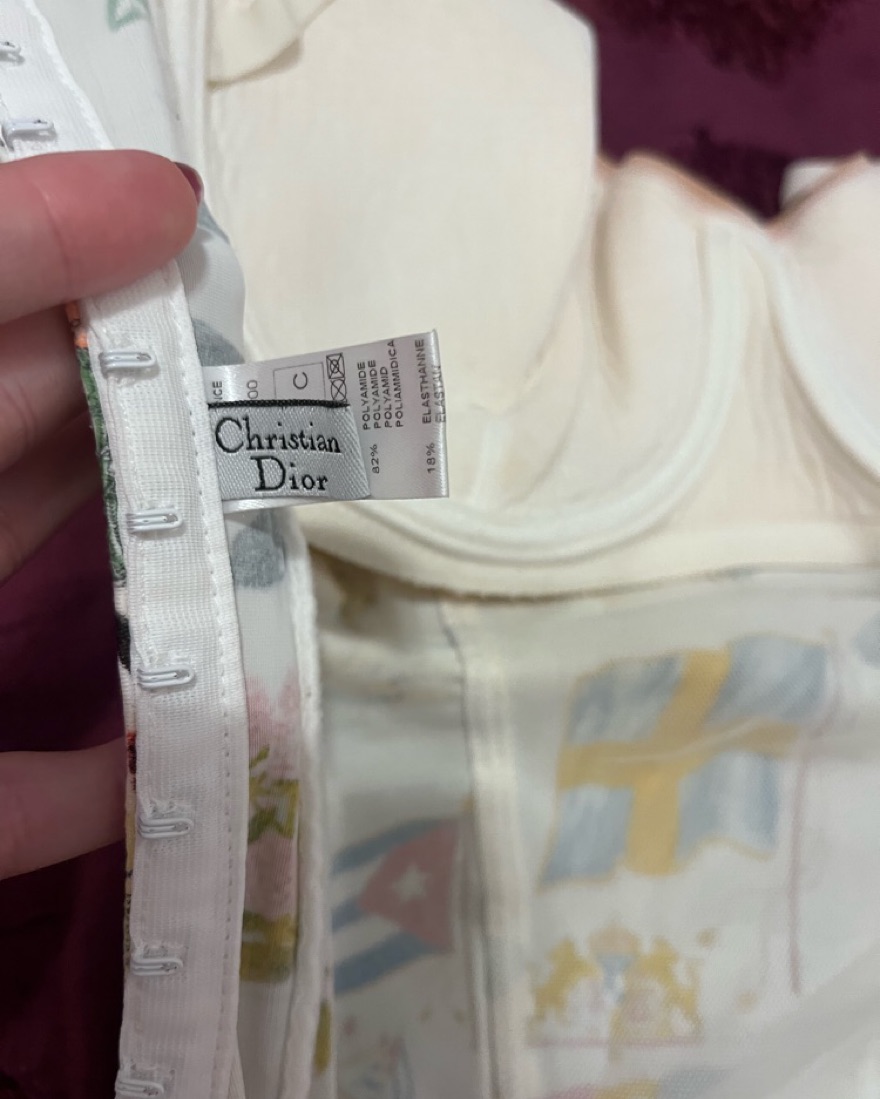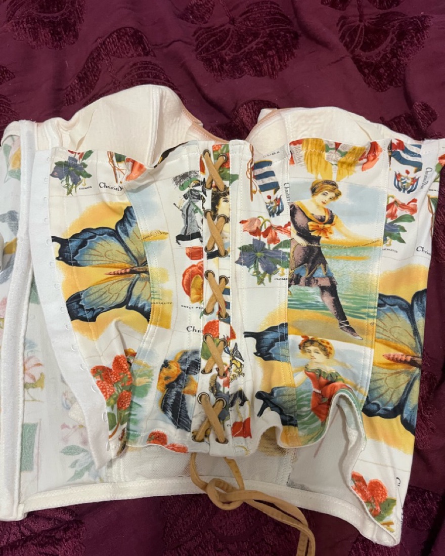 2002 Christian Dior corset. Thrifted (can’t guarentee it’s real but this seems like a weird thing for someone to fake lol). No size listed except “c” so I’d say about size medium. Has an option for straps if you have extra.