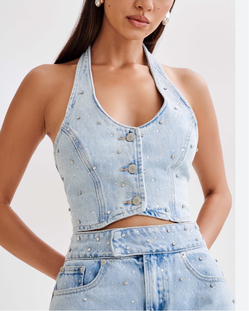 Meshki Embellished Denim Vest-NEVER WORN by Meshki - Pickle