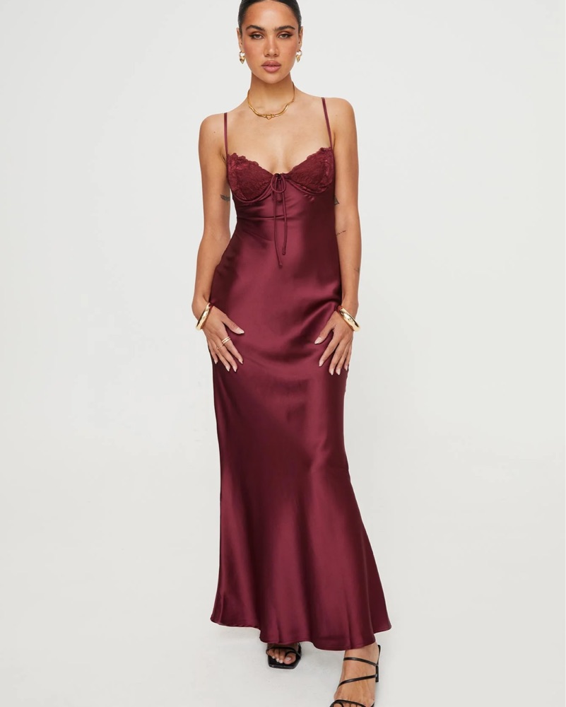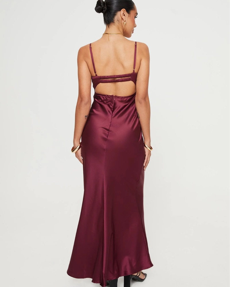 Maroon Satin Formal Dress by Princess Polly - Pickle