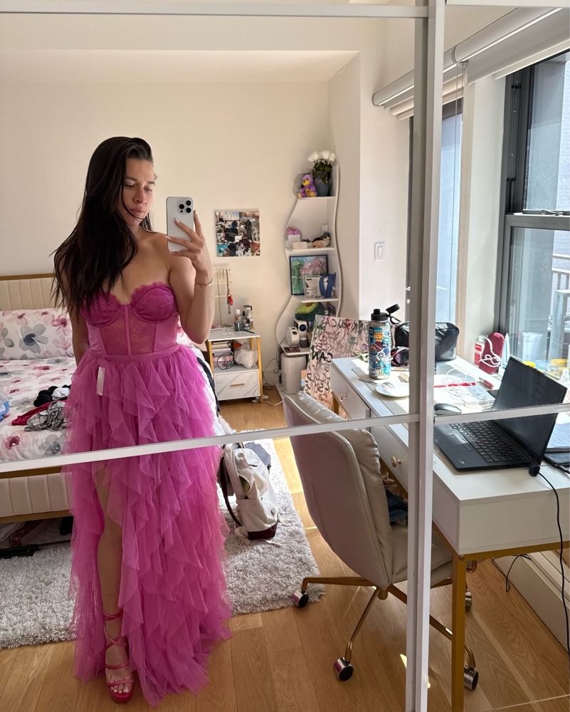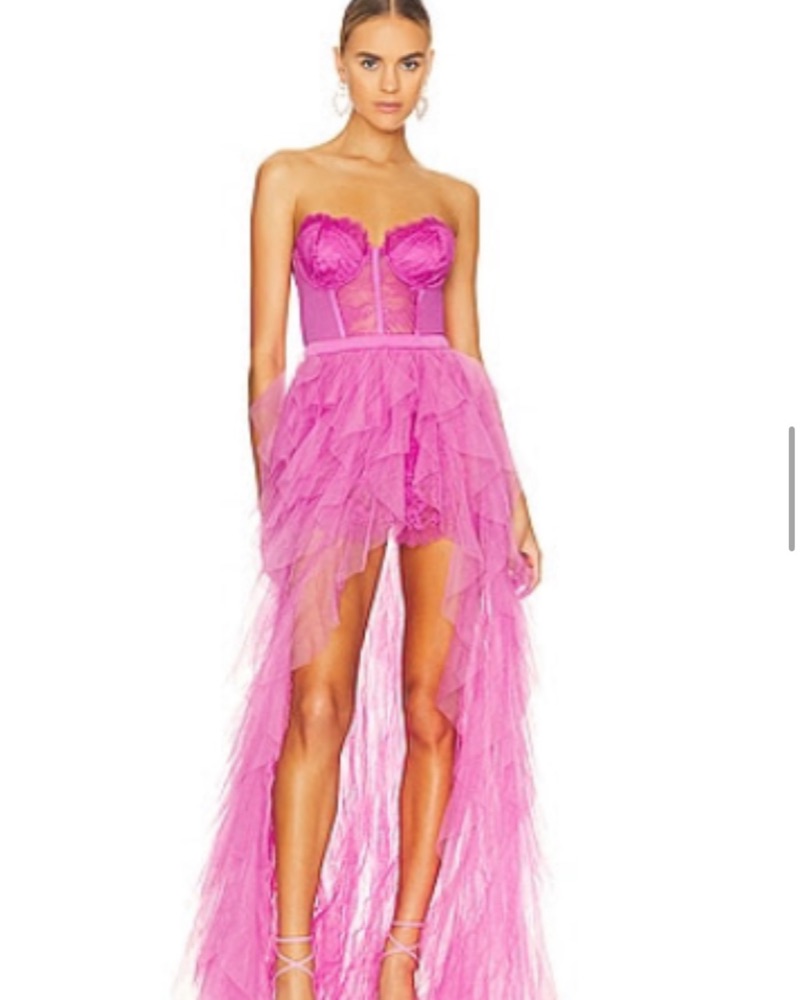 This stunning fuchsia gown is perfect for a special event or evening out. The ruffled design and fitted bodice create a dramatic, eye-catching look. Perfect for birthdays or galas, get ready to dance the night away.