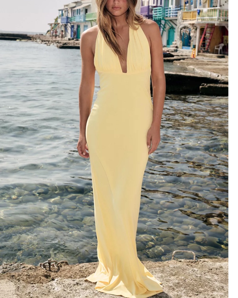 Yellow Halter Maxi Dress by Zara - Pickle