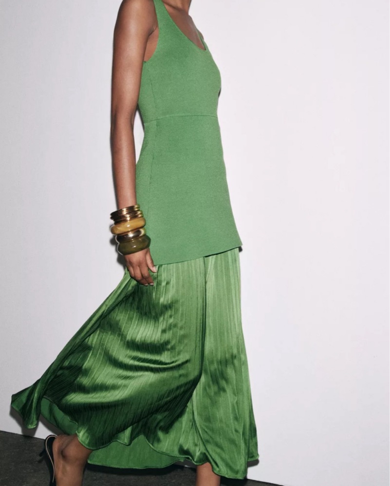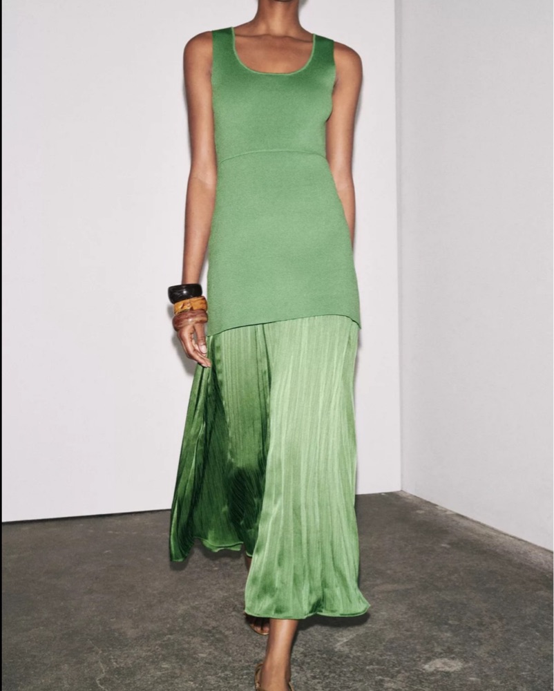 Green Pleated Knit Maxi Dress by ZARA - Pickle
