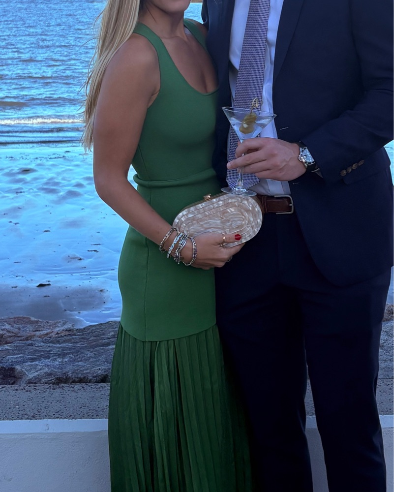 Green Pleated Knit Maxi Dress