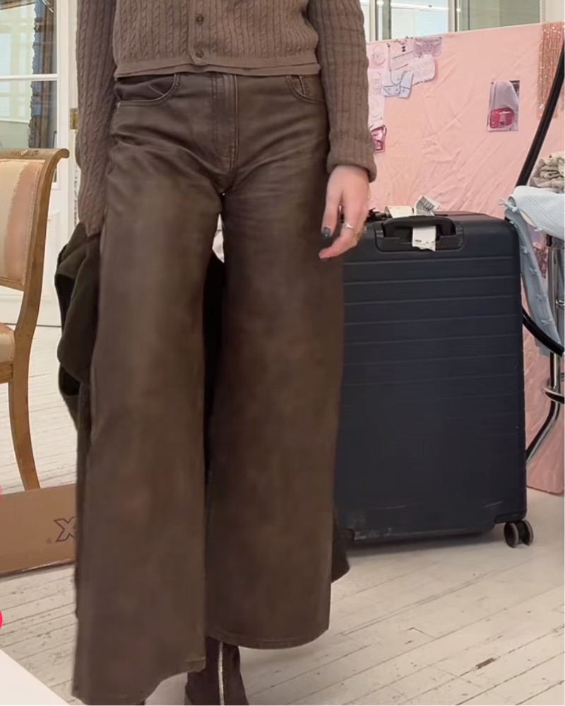 Faux leather wide leg pant