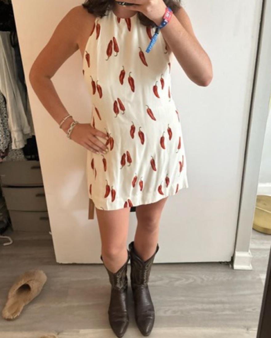 Ref Abilene Dress. Chili pepper print. Open back. Size 6!