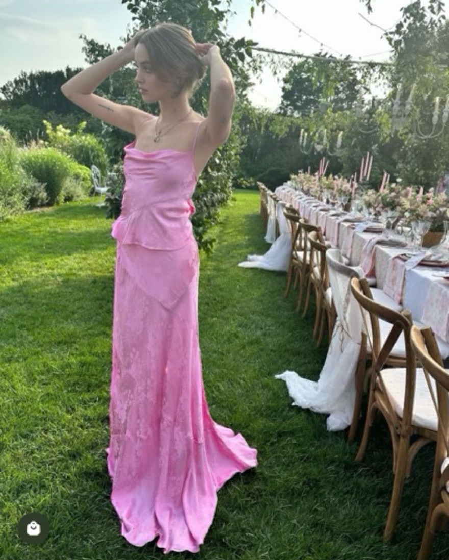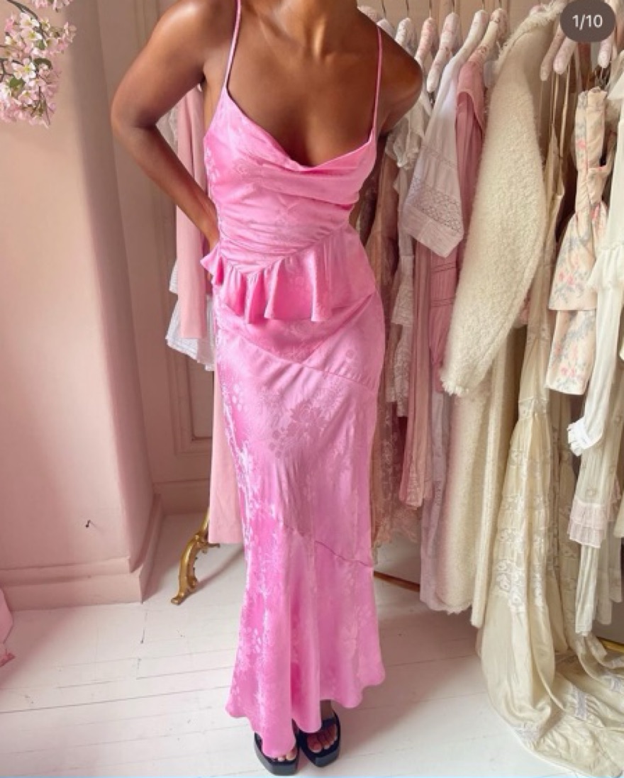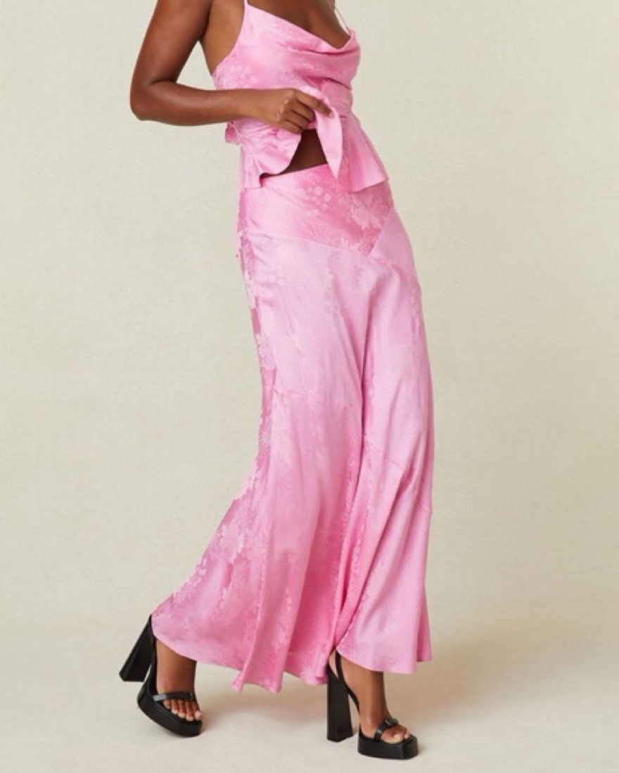 Top and skirt set, when worn togetehr look like a dress. Super silky and chic. Perfect for wedding guest. Cute from front and back. Tie back to make as tight or loose as you want.