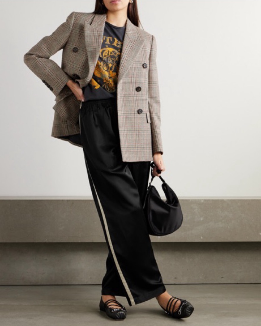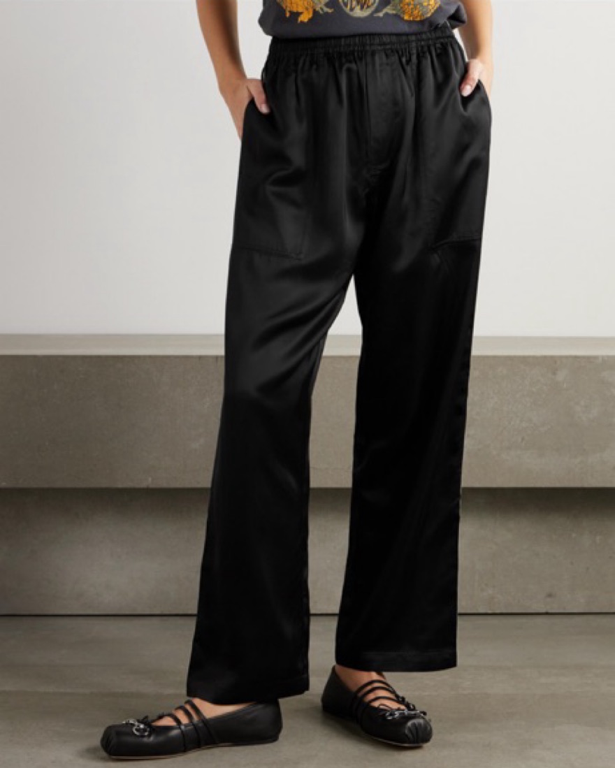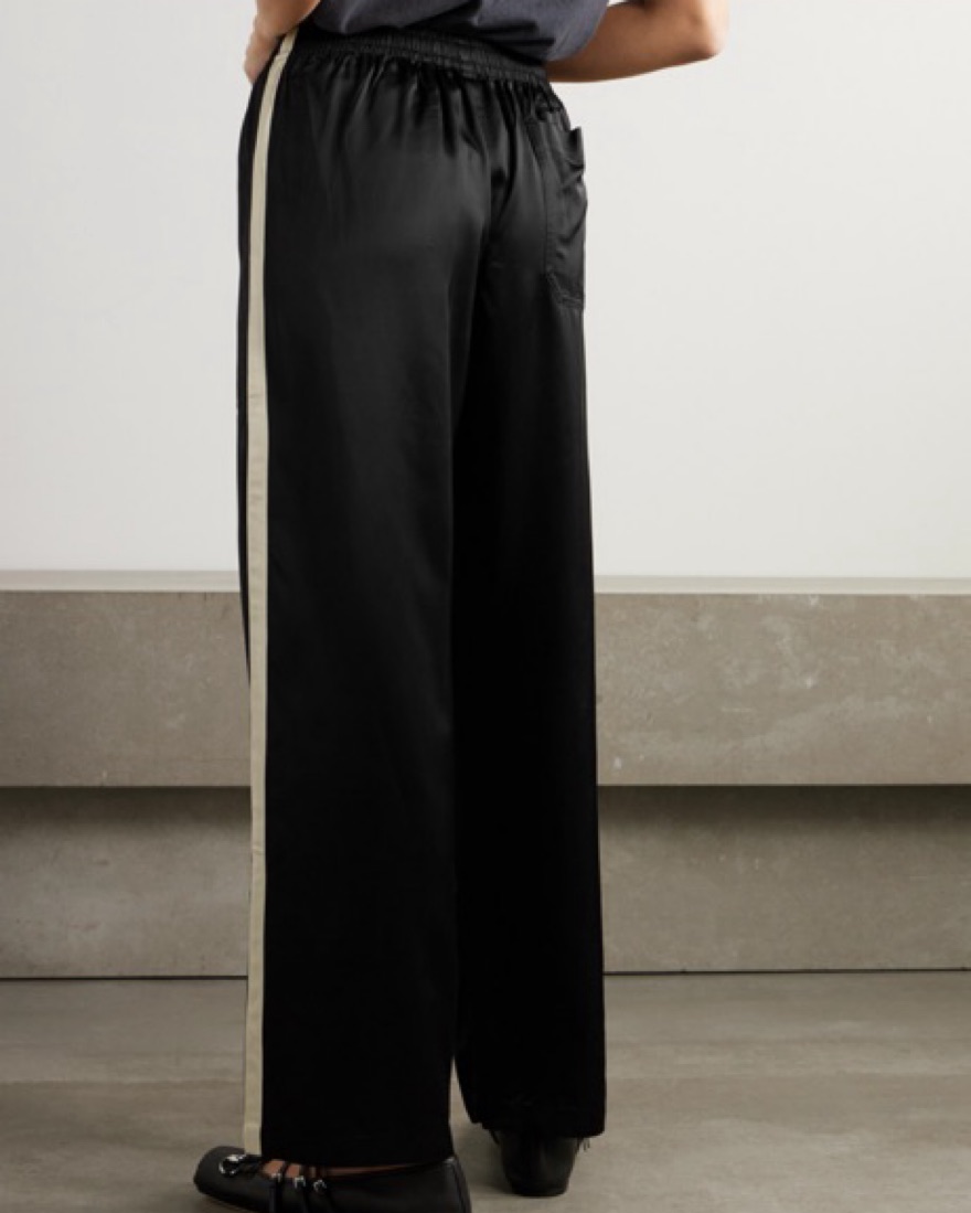 Im obsessed with this luxurious take on retro athletic styles, cut from smooth satin and trimmed along the legs with contrasting stripes. The elasticated waistband feels secure without being too snug. So chic and so comfy too. In perfect condition.