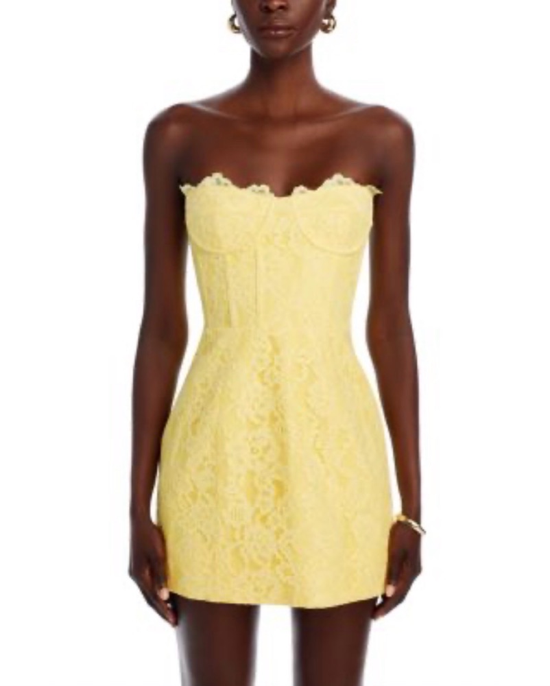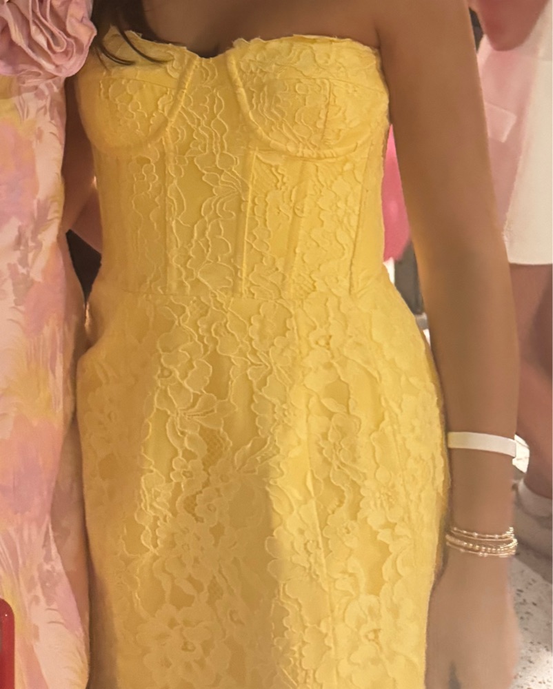 bardot yellow lace mini dress size small but it’s tailored to fit more like an extra small perfect for any formal homecoming or prom