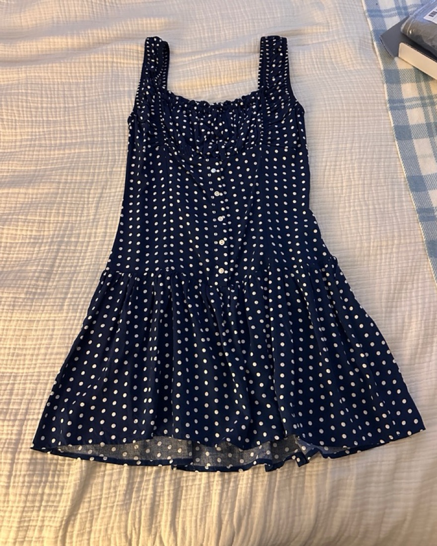 Navy blue polka dot dress size small, never worn!