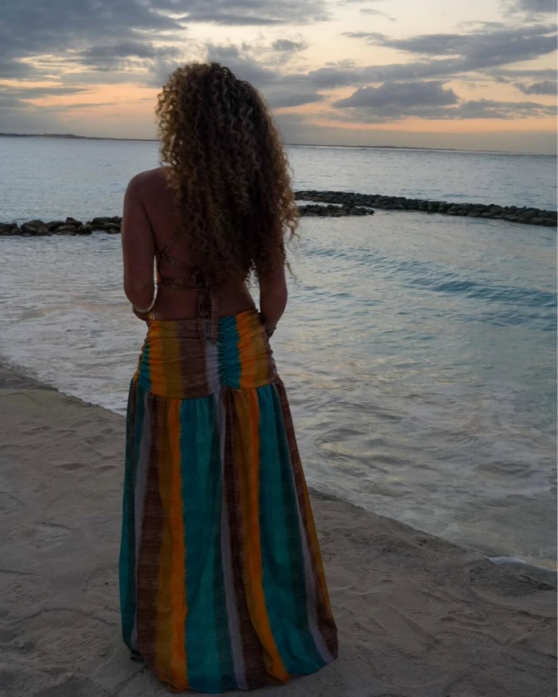 Colorful Halter Maxi Dress by Boutique - Pickle